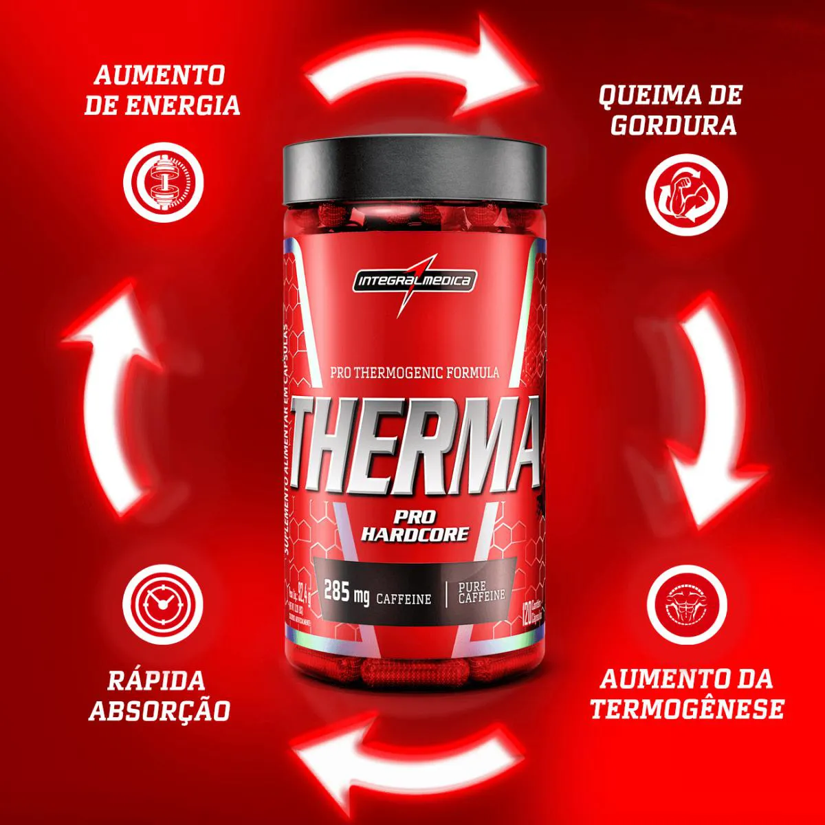 Seu maior aliado na queima de gordura! O Therma Pro Hardcore da Integralmédica fornece 285 mg de cafeína por dose. Acelerando o metabolismo e aumentando a queima de gordura.