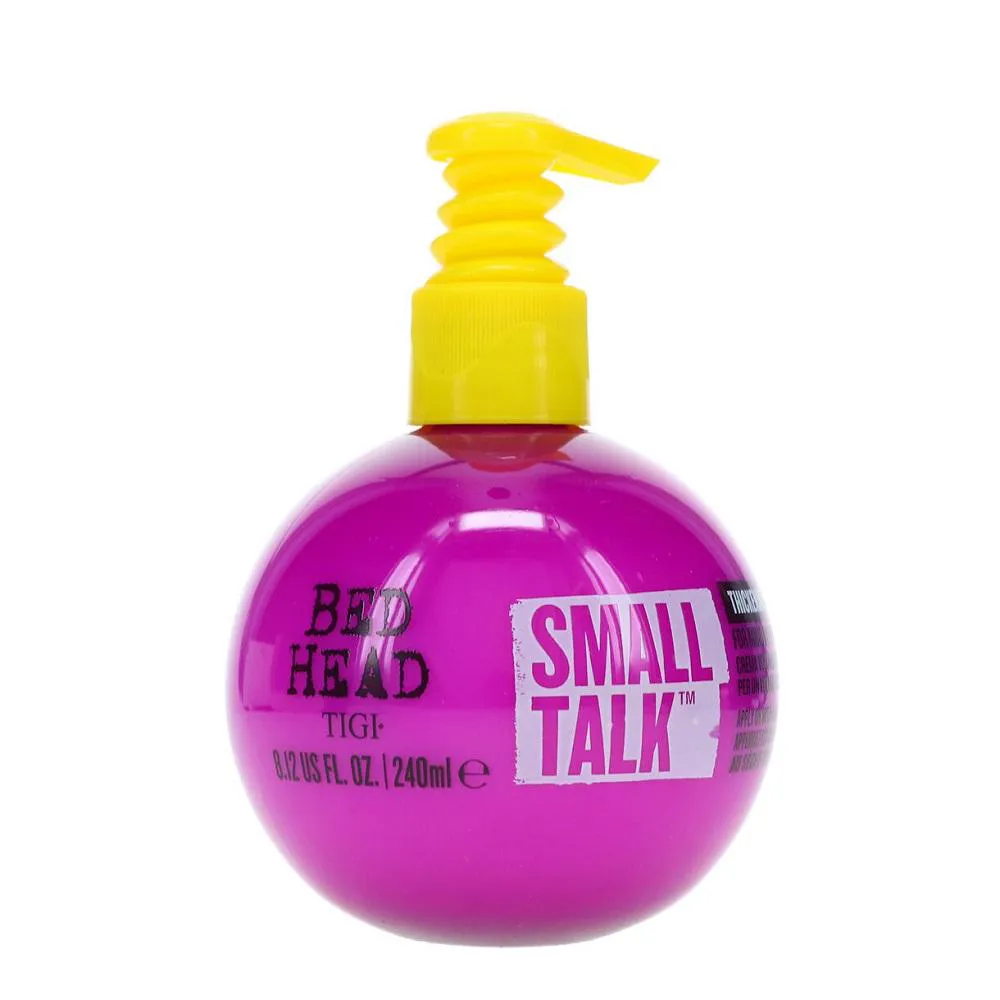 - TIGI Bed Head Small Talk é um creme volumador multifuncional e sem enxágue. Sua ação amplifica o volume instantaneamente e cria um cabelo com aspecto mais espesso.
