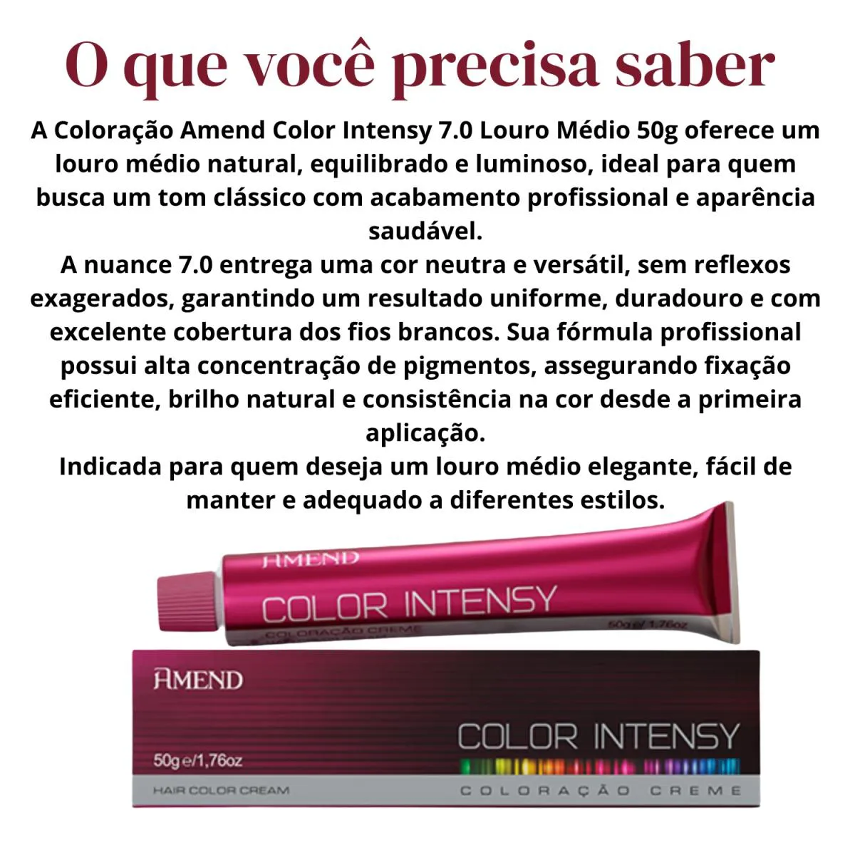 Tinta de Cabelo Amend Color Intensy 7.0 Louro Médio 50G