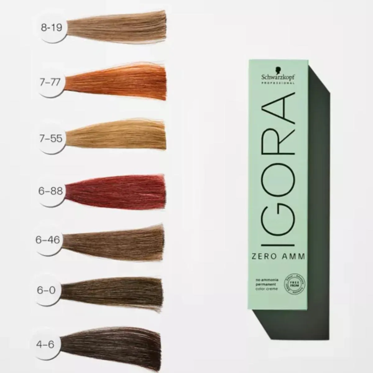 A Igora Zero Amm é uma coloração creme permanente sem amônia, desenvolvida para oferecer resultados precisos e naturais com alta performance. Sua fórmula com Tecnologia Fitolipídica combina pigmentos de alta pureza e óleos naturais micronizados, garantindo cobertura eficaz, brilho e cuidado com os fios, sem o odor característico da amônia.