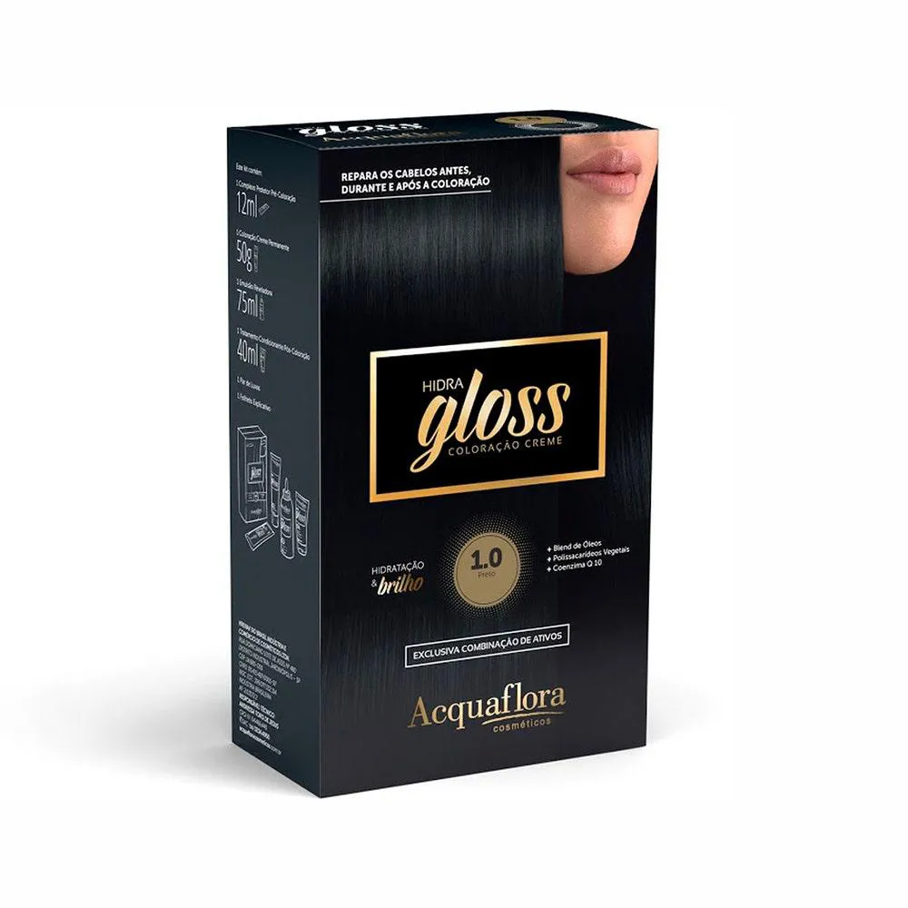 TINTURA ACQUAFLORA KIT HIDRA GLOSS 10 PRETO