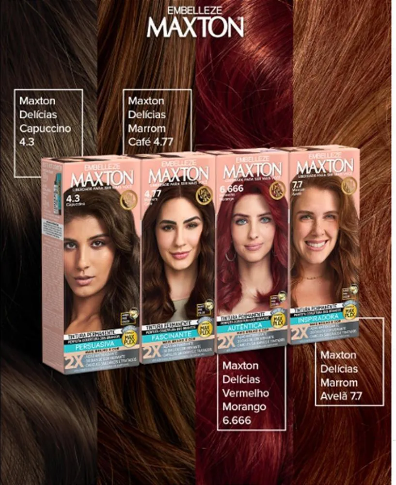 Indicado para todos os tipos de cabelos e para quem deseja se revelar inspiradora. ATENÇÃO: Sempre realize o teste de mecha. Maxton foi desenvolvida a partir de um mix equilibrado de moléculas especiais. Oferece uma cobertura perfeita dos fios brancos e tons luminosos, além de conter polímeros de alto e baixo peso molecular, que permitem uma maior aderência e afinidade do produto aos fios.