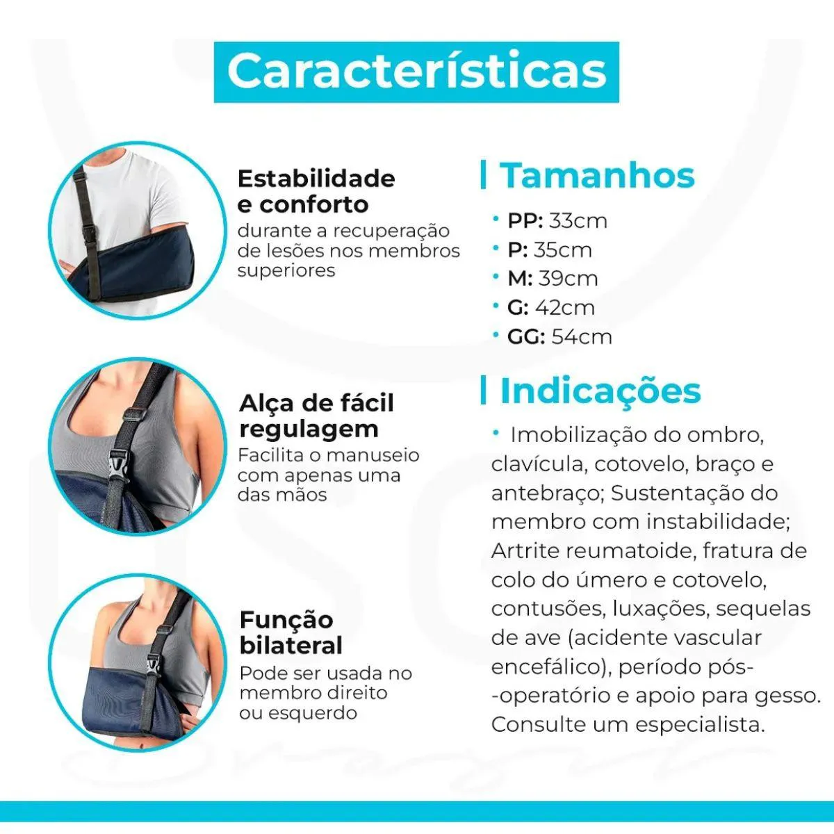 - Fabricada em tecido de algodão, a tipoia garante conforto durante o uso prolongado.