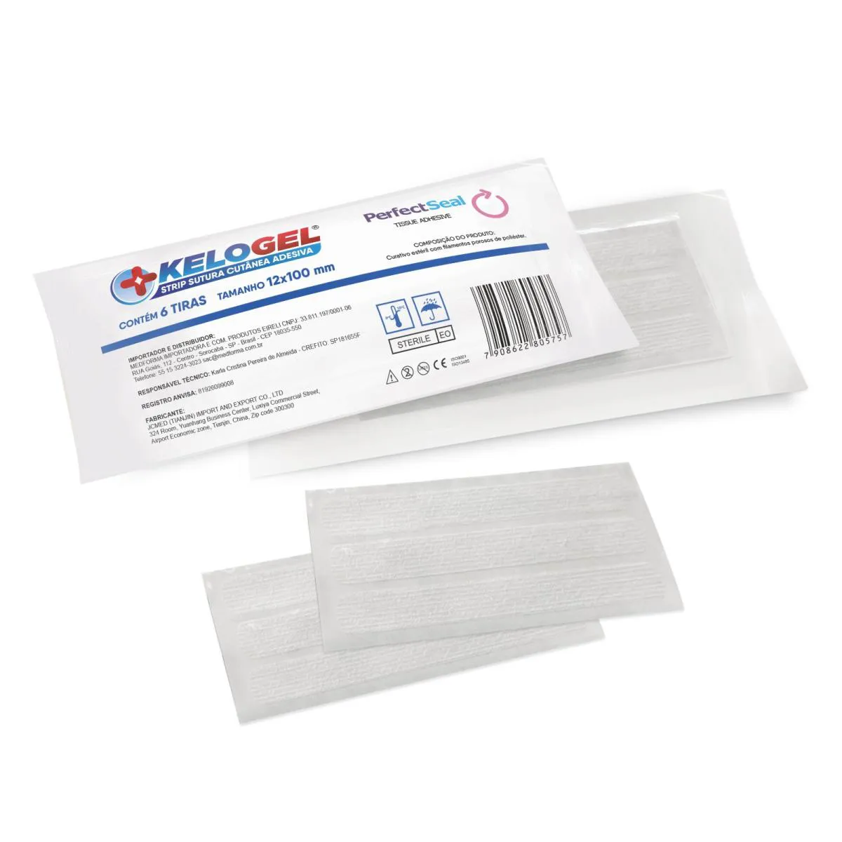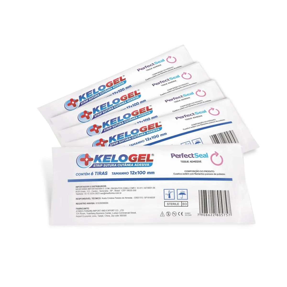 KELOGEL STRIP – SUTURA CUTANÊA ADESIVA O KELOGEL STRIP PERFECTSEAL é indicado para fechamento de pele, substituindo outros métodos em lacerações e incisões cirúrgicas. Pode ser usado sozinho ou em conjunto com suturas ou grampos, proporcionando maior sustentação pós-remoção. Composição: Curativo estéril com filamentos porosos de poliéster. Indicações: Substituição de métodos tradicionais de fechamento em lacerações e incisões. Pode ser usado com suturas, grampos ou após sua remoção para suporte adicional. Modo de uso: