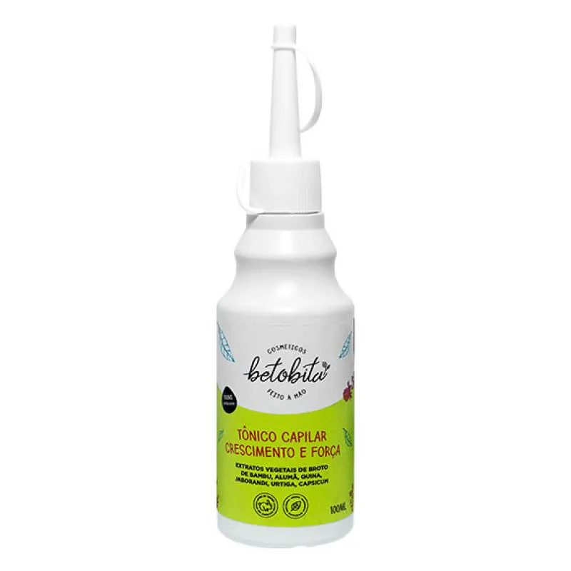 O Tonico Crescimento e Força BetoBita Feito à Mão É formulado com uma mistura elaborada de extratos vegetais que fortalecem os fios. Fortifica a raiz e combate a queda. Ele também é uma grande ajuda no crescimento capilar. Age diretamente no couro cabeludo, tratando dos folículos capilares. Ao tratar da raiz o tônico fortalece todo o cabelo, essa ação permite ao folículo sadio voltar a crescer, além de evitar a queda dos fios.