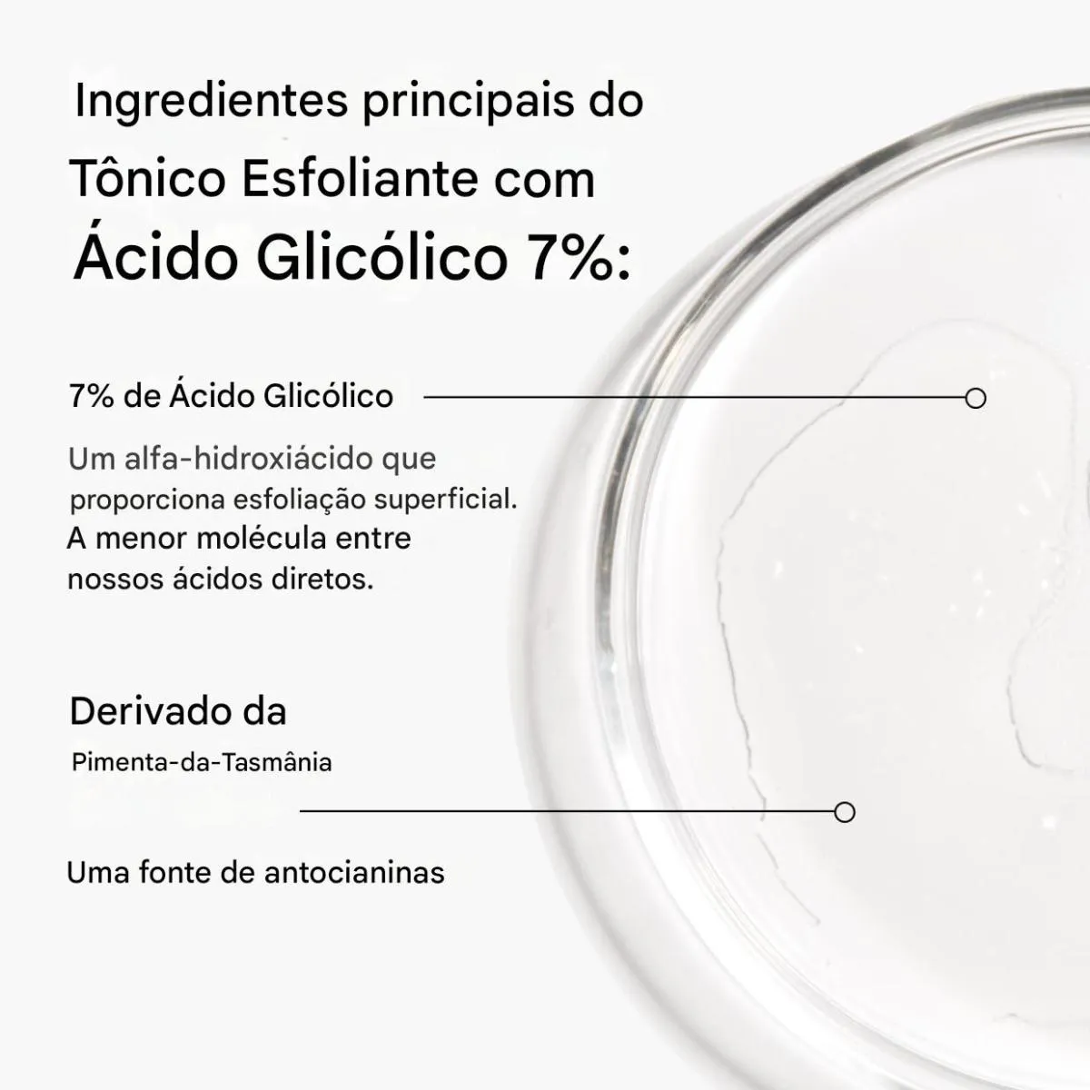 O produto é um cosmético líquido desenvolvido para cuidados faciais, com formulação contendo ácido glicólico a 7%. Serve para esfoliar e tonificar a pele, fazendo parte da rotina de skincare, com o objetivo de promover uma limpeza e renovação cutânea mais profunda, melhorando a textura e aparência da pele facial.