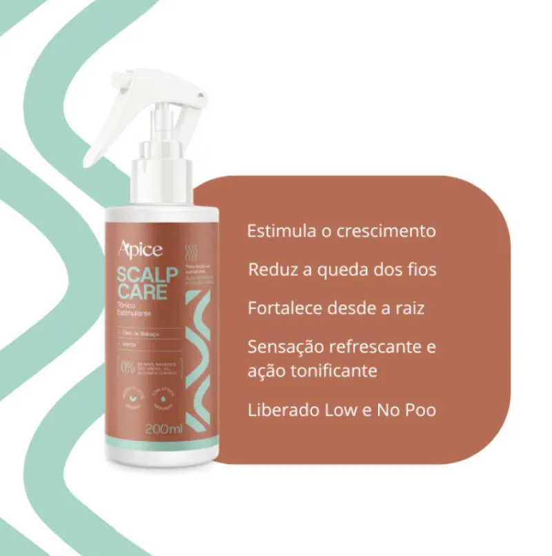 O Tônico Estimulante Scalp Care 200ml é um tratamento intensivo para revitalização do couro cabeludo, desenvolvido com Óleo de Babaçu e Menta. Sua fórmula leve e refrescante é projetada para ativar a circulação sanguínea, fortalecendo os folículos capilares e estimulando o crescimento saudável dos fios.