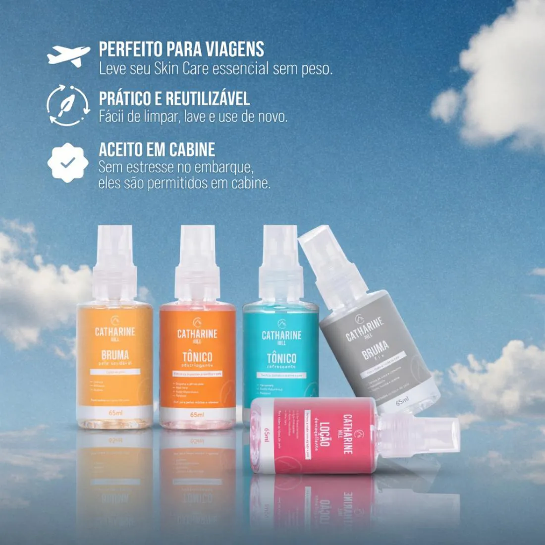 O Tônico Adstringente da linha Travel Size de Catharine Hill foi desenvolvido para promover limpeza profunda, tonificação da pele e controle da oleosidade. Sua fórmula combina ativos como Ácido Hialurônico, Pantenol, Extrato de Coco e Aloe Vera, que ajudam a manter a hidratação natural da pele enquanto removem impurezas e resíduos acumulados ao longo do dia. Indicado especialmente para peles mistas e oleosas, auxilia no fechamento dos poros e na preparação da pele para os próximos passos da rotina de skincare ou para a maquiagem. Contém: 65ml Você vai amar!
