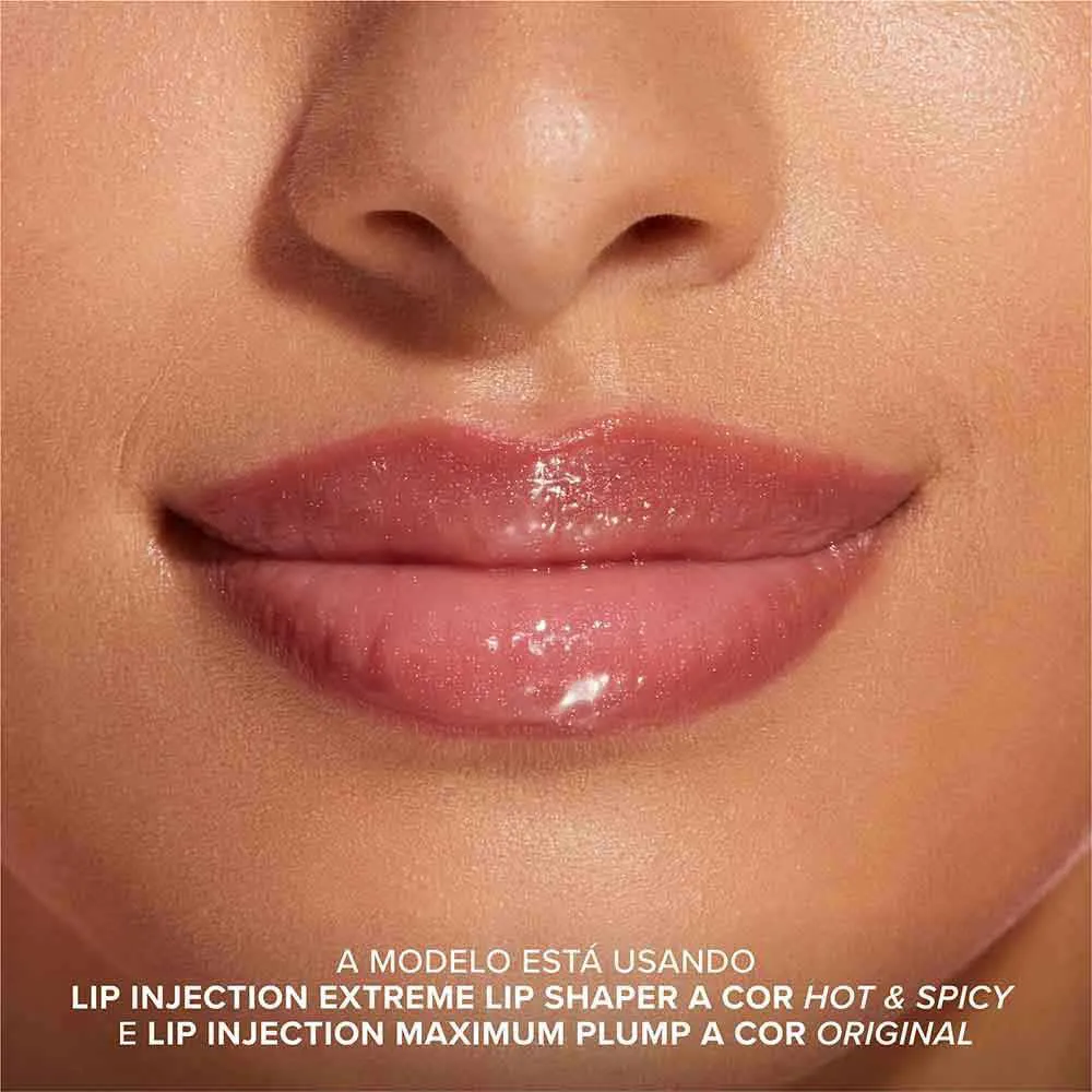 3. Em seguida, preencha os lábios com o Lip Injection Maximum Plump Lip Gloss, aplicando uma quantidade generosa no centro para um efeito mais volumoso.
