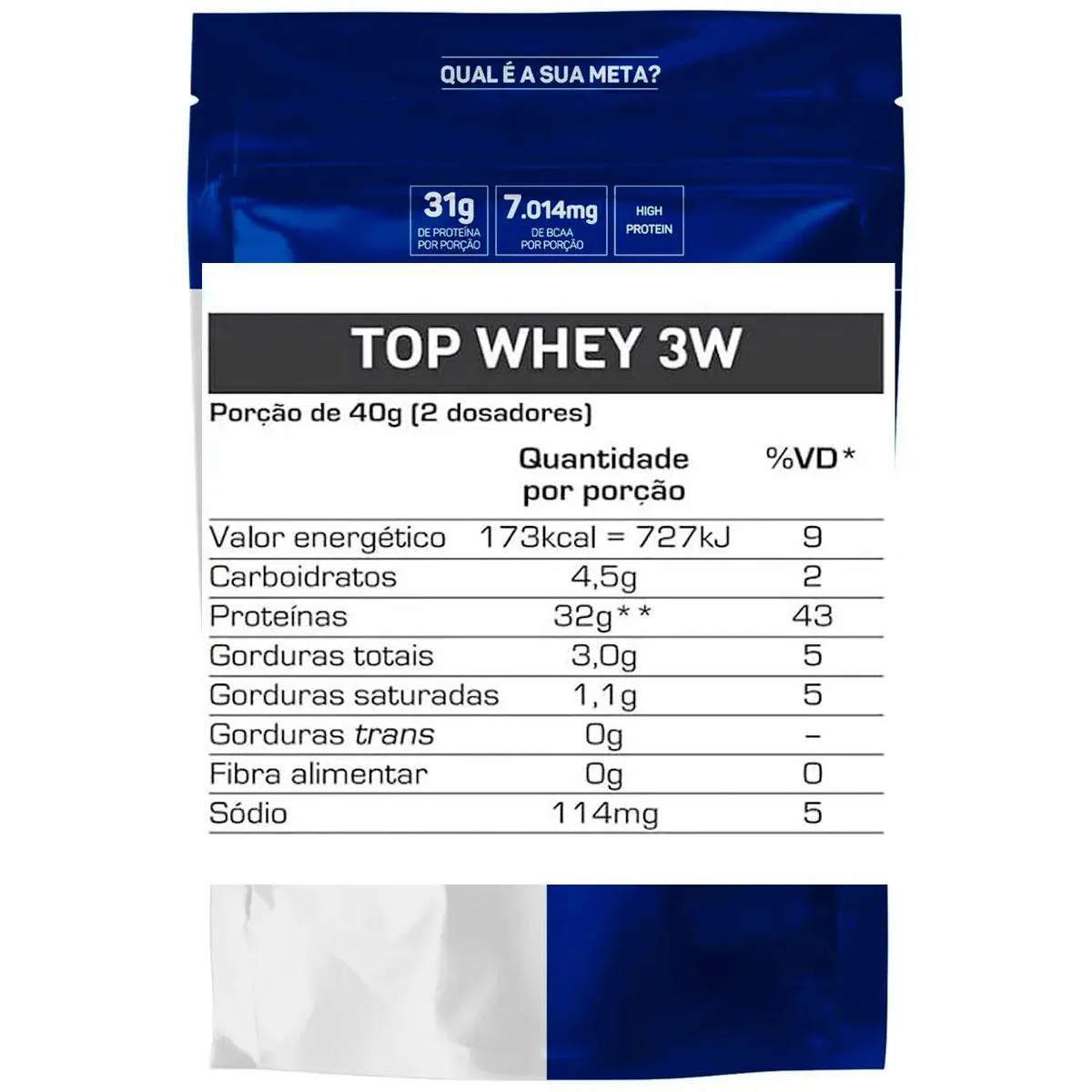 TOP WHEY 3W é o suplemento proteico mais premiado do Brasil! Essa fórmula exclusiva da Max Titanium contém alto teor de proteínas que auxiliam na formação dos músculos. Composto por três tipos de proteínas do soro do leite (Concentrada (WPC), Isolada (WPI) e Hidrolisada (WPH), suas matérias-primas possuem alta quantidade de aminoácidos, principalmente de BCAAs. A linha Mais Performance fornece de 31g a 32g de proteínas por porção, além de 11 vitaminas e 6 minerais. Benefícios: - Alta concentração proteica; - Mix do 3 tipos de whey isolado, hidrolisado e concentrado - Baixo índice de carboidratos. - Rico em proteínas 32g proteína por porção - Rico em Vitaminas e Mineiras - Gluten Free - Auxilia na formação de músculos - auxilia nas principais funções metabólicas INGREDIENTES CHOCOLATE: Proteína concentrada do soro do leite (WPC), proteína isolada do soro do leite (WPI), cacaualcalino, proteína hidrolisada do soro do leite (WPH), mix de vitaminas e minerais (ácido ascórbico (vitamina c), nicotinamida (vitamina B3), acetato de DL-alfa-tocoferol (vitamina e), D-pantotenato de cálcio (vitamina B5), cloridrato de piridoxina (vitamina B6), riboflavina (vitamina B2), tiamina mononitrato (vitamina B1), sulfato cúprico (cobre), acetato de retinol (vitamina a), ácido fólico, iodeto de potássio (iodo), molibdato de sódio (molibdênio), picolinato de cromo (cromo), selenito de sódio (selênio), D-biotina (vitamina H), cianocobalamina (vitamina B12)), emulsificante lecitina de soja*, corante caramelo IV, aromatizantes e edulcorante sucralose. NÃO CONTÉM GLÚTEN.*utilizada na fabricação da proteína do soro do leite com a função de deixar o produto instantâneo (fácil diluição). BAUNILHA: Proteína concentrada do soro do leite (WPC), proteína isolada do soro do leite (WPI), cacau alcalino, proteína hidrolisada do soro do leite (WPH), mix de vitaminas e minerais (ácido ascórbico (vitamina C), nicotinamida (vitamina B3), acetato de DL-alfa-tocoferol (vitamina E), D-pantotenato de cálcio (vitamina B5), cloridrato de piridoxina (vitamina B6), riboflavina (vitamina B2), tiamina mononitrato (vitamina B1), sulfato cúprico (cobre), acetato de retinol (vitamina A), ácido fólico, iodeto de potássio (iodo), molibdato de sódio (molibdênio), picolinato de cromo (cromo), selenito de sódio (selênio), D-biotina (vitamina H), cianocobalamina (vitamina B12)), emulsificante lecitina de soja*, corante caramelo IV, aromatizantes e edulcorante sucralose. NÃO CONTÉM GLÚTEN.*utilizada na fabricação da proteína do soro do leite com a função de deixar o produto instantâneo (fácil diluição). MORANGO: Proteína concentrada do soro do leite (WPC), proteína isolada do soro do leite (WPI), proteína hidrolisada do soro do leite (WPH), mix de vitaminas e minerais (ácido ascórbico (vitamina C), nicotinamida (vitamina B3), acetato de DL-alfa-tocoferol (vitamina E), D-pantotenato de cálcio (vitamina B5), cloridrato de piridoxina (vitamina B6), riboflavina (vitamina B2), tiamina mononitrato (vitamina B1), sulfato cúprico (cobre), acetato de retinol (vitamina A), ácido fólico, iodeto de potássio (iodo), molibdato de sódio (molibdênio), picolinato de cromo (cromo), selenito de sódio (selênio), D-biotina (vitamina H), cianocobalamina (vitamina B12)), emulsificante lecitina de soja*, aromatizantes, edulcorante sucralose e corantes artificiais amaranto e azul brilhante FCF. NÃO CONTÉM GLÚTEN. *utilizada na fabricação da proteína do soro do leite com a função de deixar o produto instantâneo (fácil diluição). Sugestão de Uso: Para o preparo de uma porção, adicione 2 dosadores do produto em 150ml de sua bebida preferida (água mineral, leite desnatado, etc). Utilize de uma a duas porções ao dia, ou conforme orientação de nutricionista ou médico. *Esse produto não é um medicamento, não tem como objetivo auxiliar no tratamento, cura ou combate de qualquer doença Registro no M.S. nº Produto dispensado de registro RDC 240 de 2018