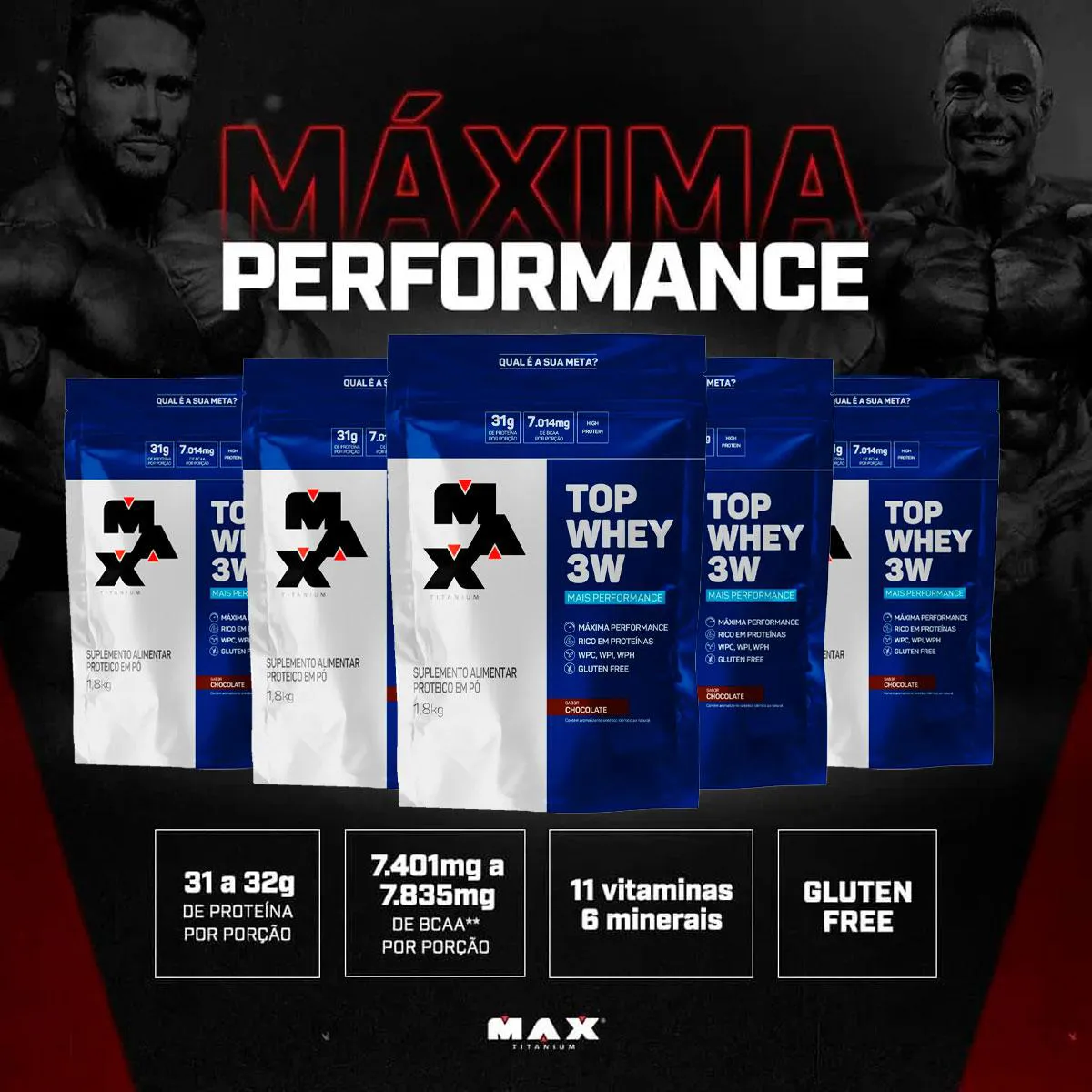 Top Whey 3W + Performance Chocolate (1,8Kg) - Max Titanium