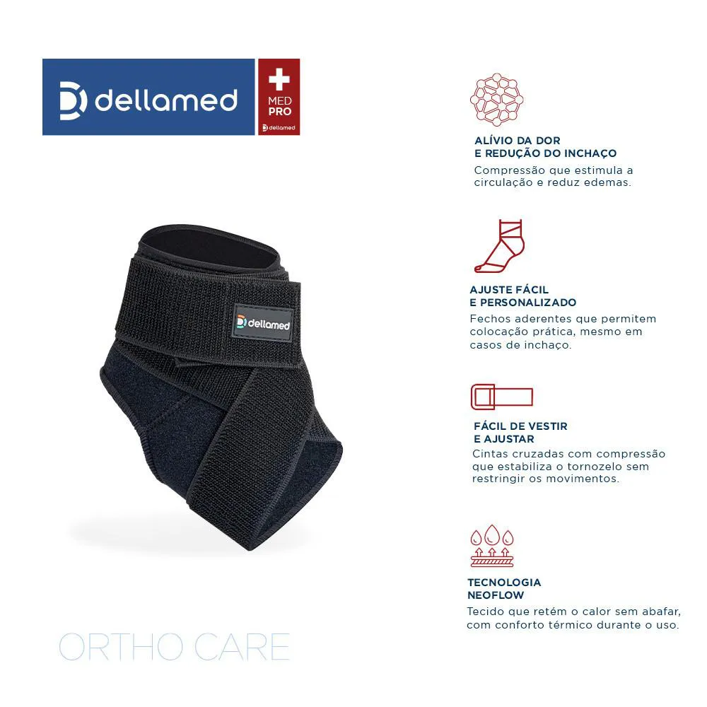 A Tornozeleira Ajustável Dellamed foi desenvolvida para oferecer compressão graduada, suporte e estabilização à articulação do tornozelo, auxiliando na prevenção e no tratamento de lesões articulares e musculares. Confeccionada em Neoprene com tecnologia NeoFlow, proporciona conforto térmico, respirabilidade e durabilidade superiores. Seu design com cintas cruzadas e fechos aderentes ajustáveis garante adaptação anatômica ao tornozelo e fácil colocação, mesmo em casos de inchaço ou restrição de movimento. Ideal para uso esportivo, pós-trauma e reabilitação fisioterapêutica.