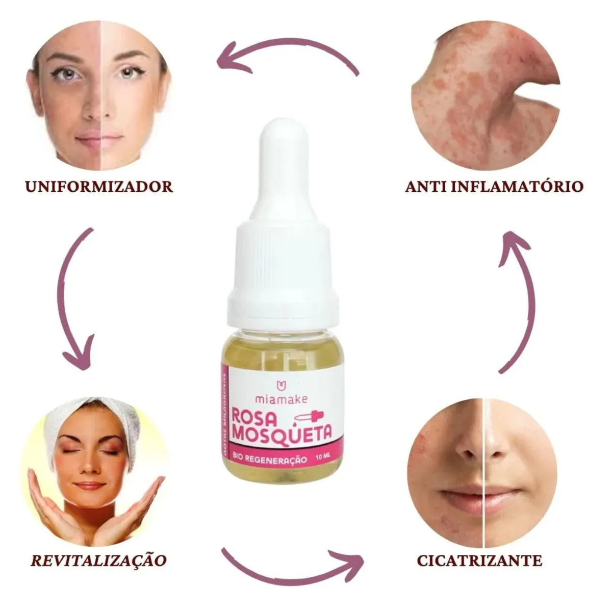 - Combina Rosa Mosqueta e Niacinamida para clareamento.
