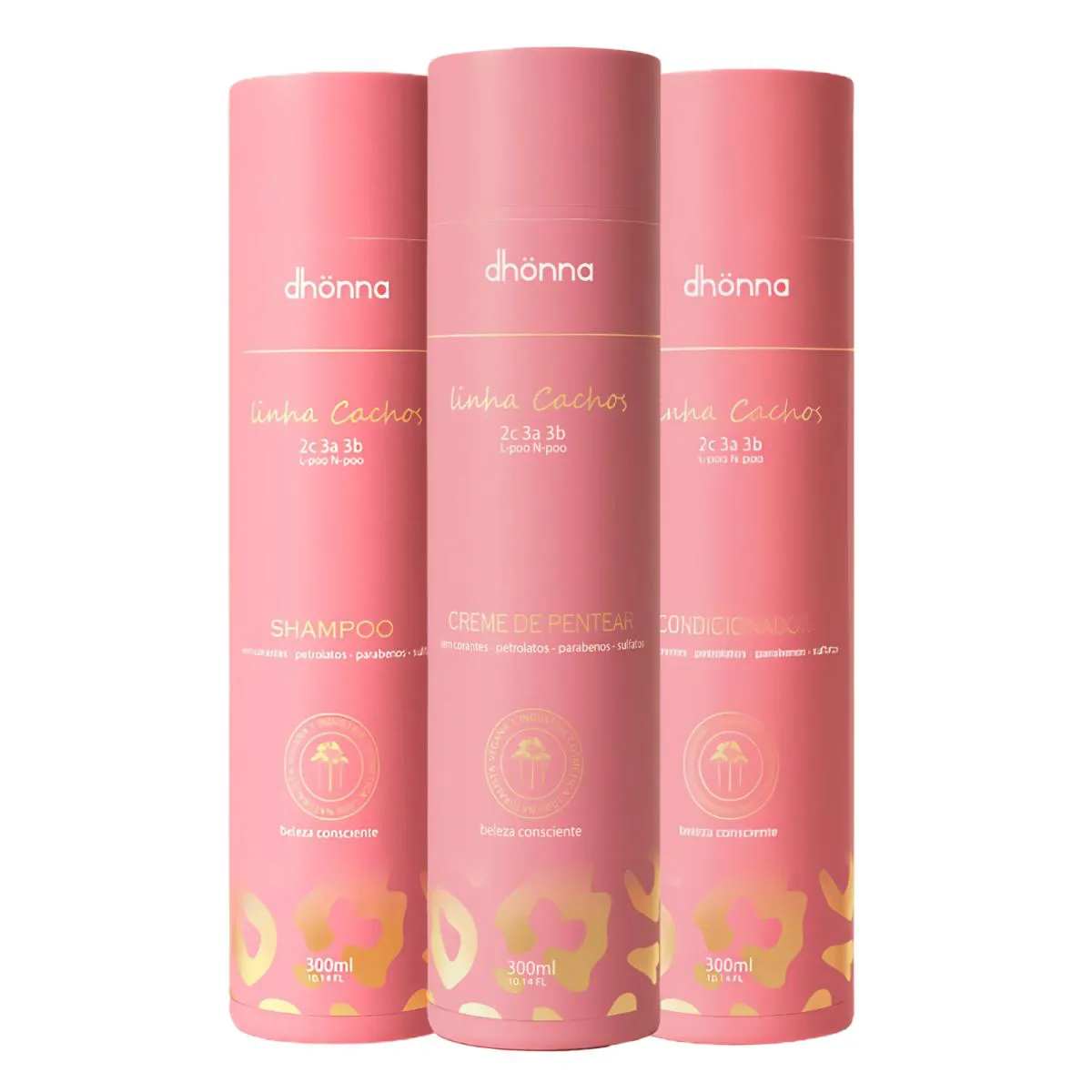 Trio Cachos Creme de Pentear, Shampoo e Condicionador - Dhonna | Trio Ideal para Cachos Definidos e Hidratados