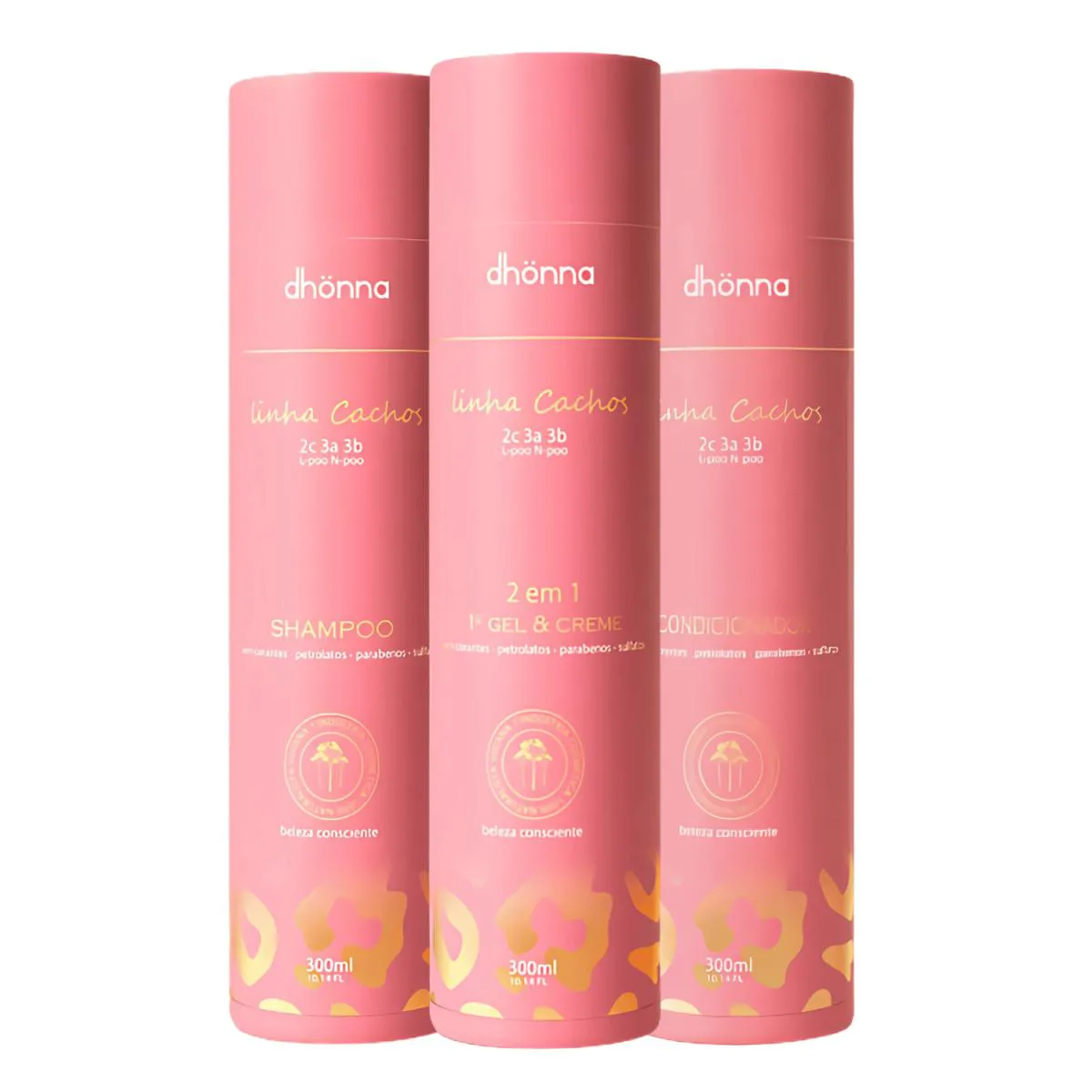 Trio Cachos Gel Creme, Shampoo e Condicionador - Dhonna | Trio Ideal para Cachos Definidos e Hidratados