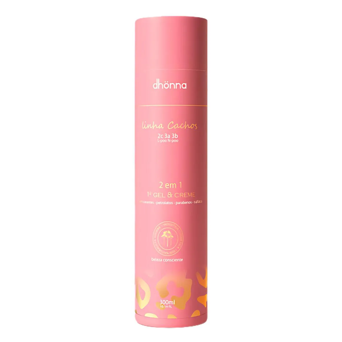 Após lavar os cabelos com o Shampoo Cachos Dhonna, aplique o condicionador ao longo dos fios, deixe agir por 3 minutos e enxágue bem. Gel & Creme Cachos Dhonna – 300mL 2 em 1: Hidratação + Fixação leve para definição perfeita