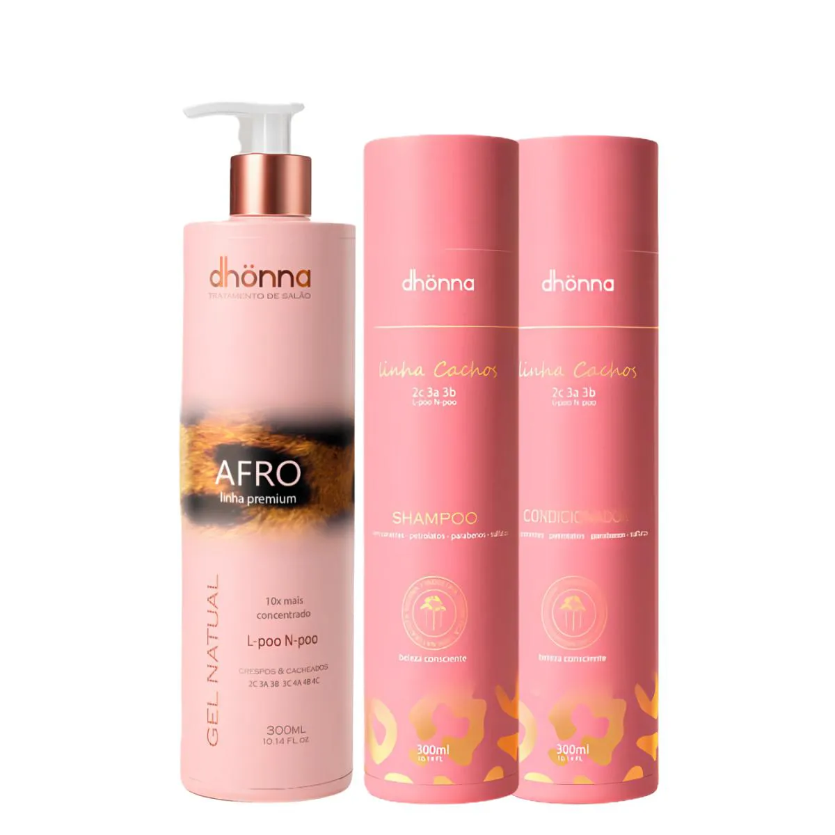 Kit Dhonna - shampoo e condicionador Cachos e Gel de Definição Afro - 300mL