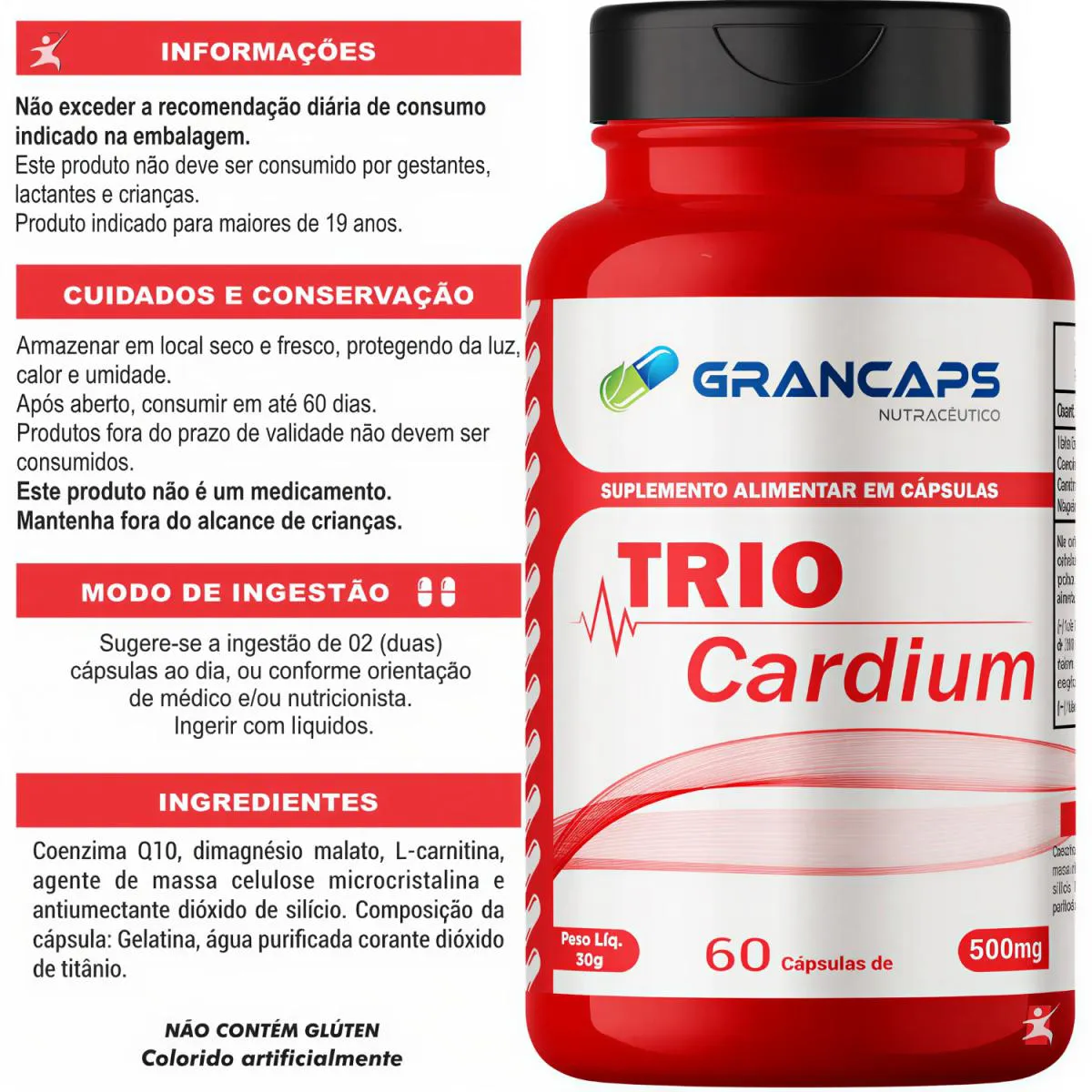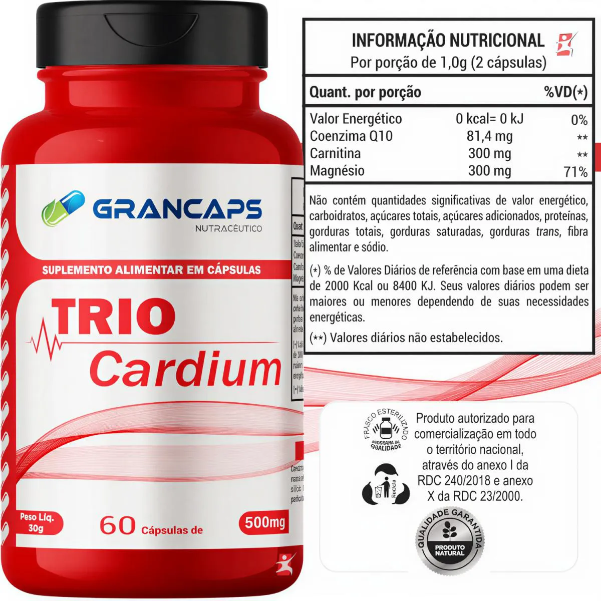 Trio Cardium - Coenzima Q10 + Magnésio + L-Carnitina 60 Cápsulas - Grancaps