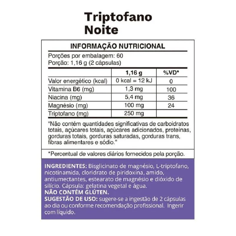 O Triptofano Noite da Ocean Drop é elaborado com uma combinação de ingredientes naturais, ele une o triptofano, magnésio, niacina e a vitamina B6 em ótimas concentrações. A fórmula é 100% vegana, sem glúten e sem lactose.