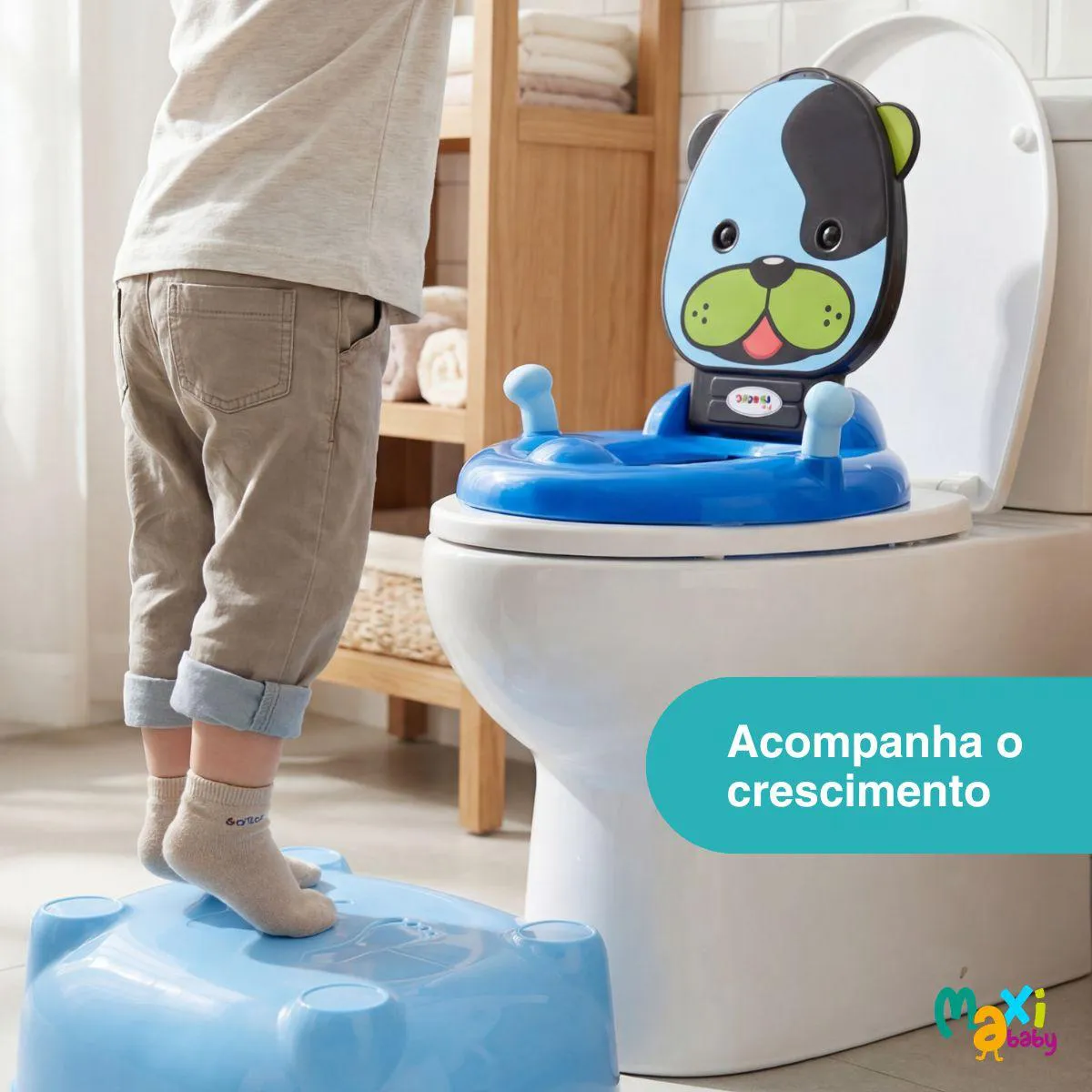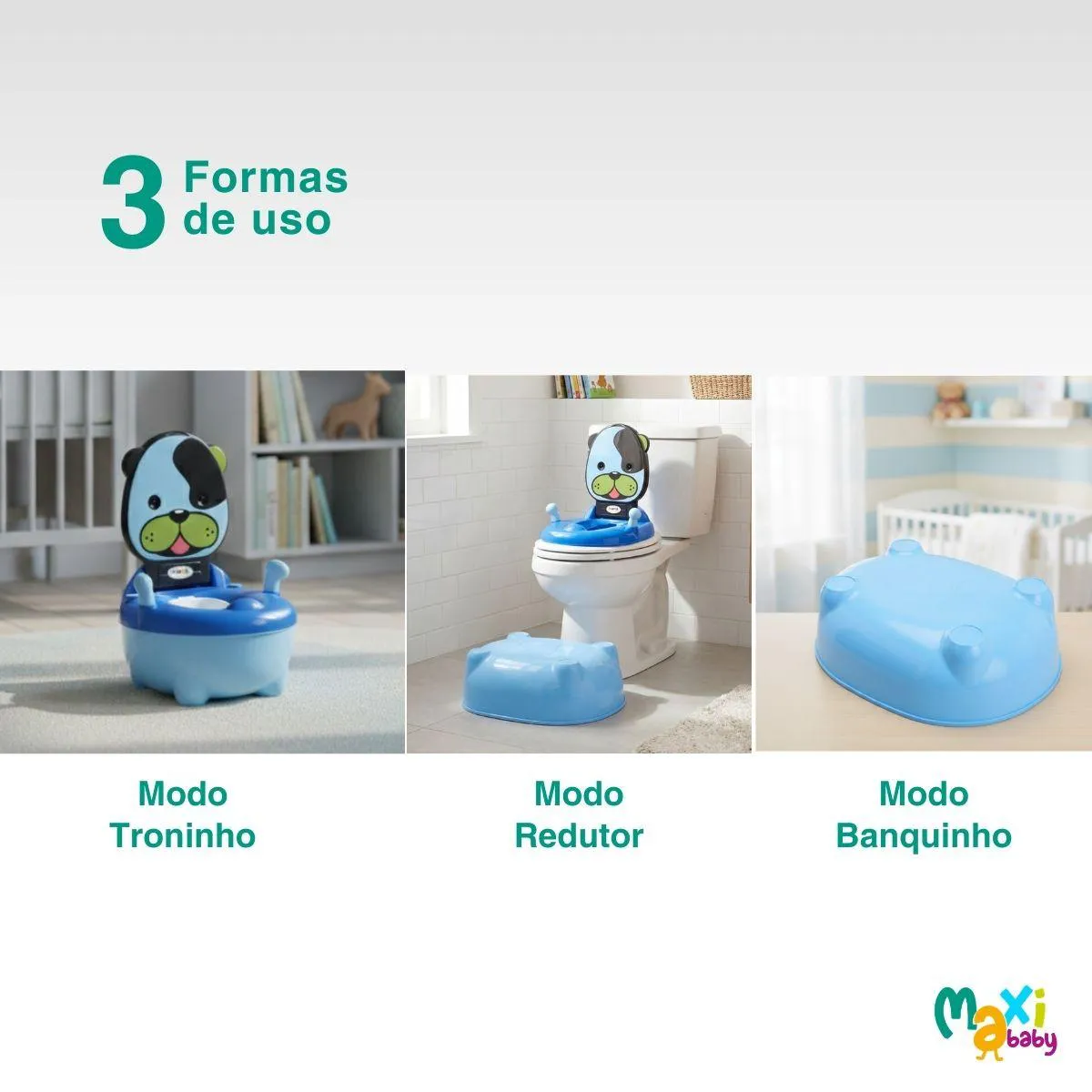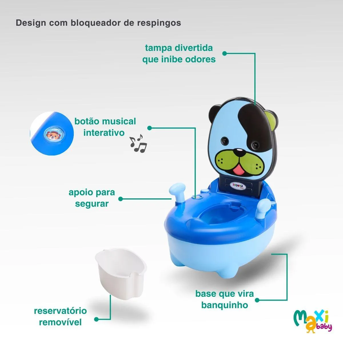 O que é e para que serve o Troninho Penico infantil Musical Desfralde Que Vira Banquinho Cachorro Azul Maxi Baby?