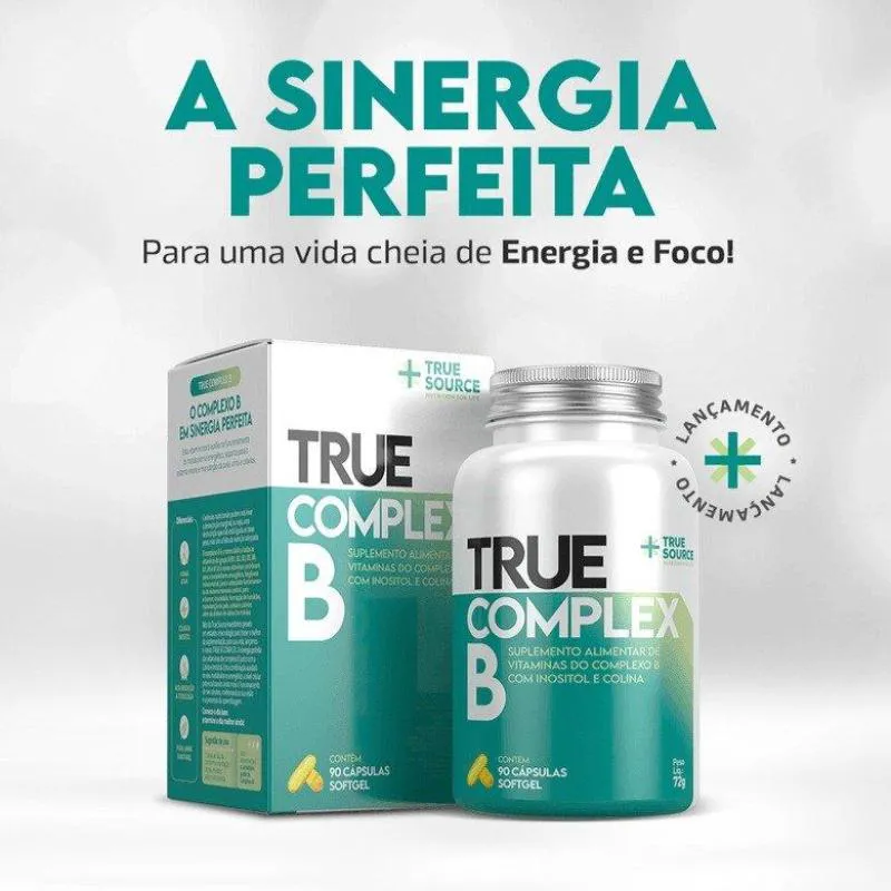 True Complex B 90 Cápsulas – Sinergia Perfeita para Sua saúde e Energia O True Complex B é um suplemento poderoso que reúne todas as vitaminas do complexo B (B1, B2, B3, B5, B6, B7, B9 e B12), além de colina e inositol, para oferecer benefícios como aumento de energia, suporte ao sistema nervoso e fortalecimento da saúde mental e emocional. Essencial para a síntese de hormônios e hemácias, este suplemento contribui para o bom funcionamento do corpo em diversos níveis, ajudando a melhorar memória, concentração e o bem-estar geral. Diferenciais Exclusivos: