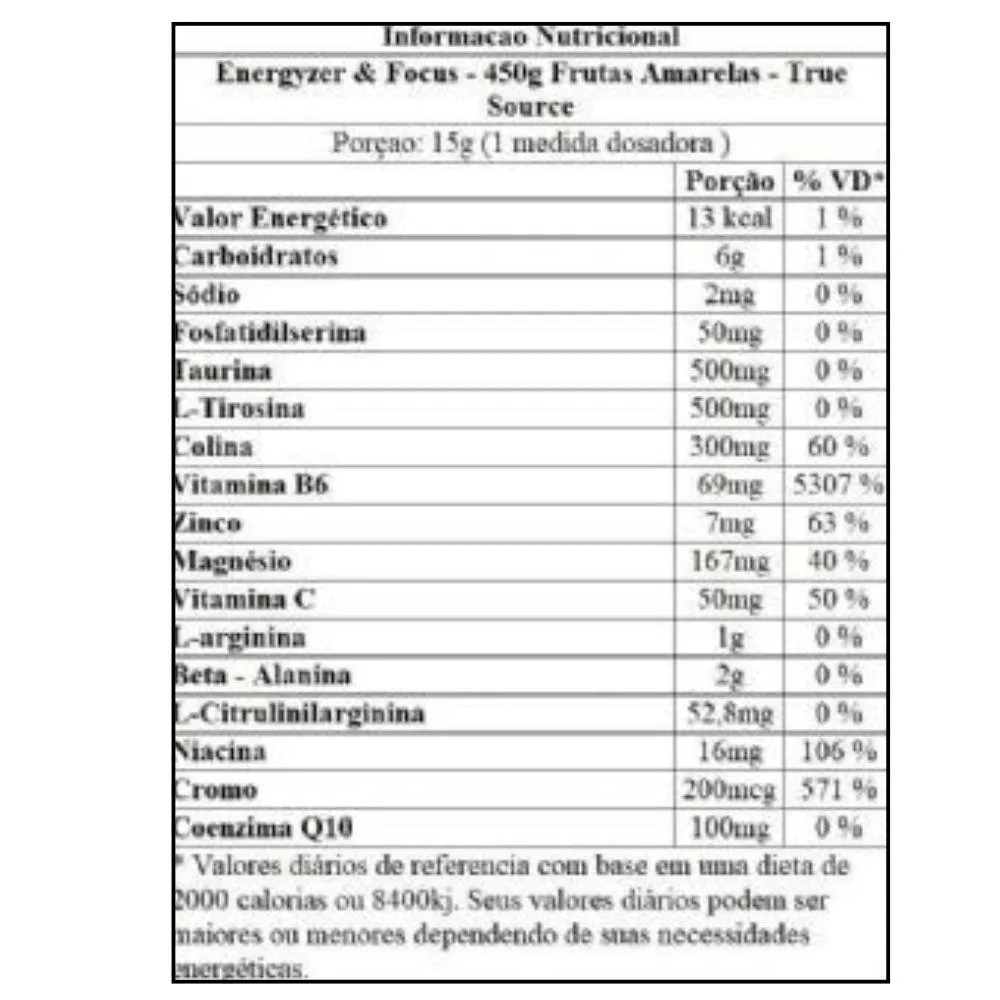 True Energyzer Focus Frutas Amarelas 450g - True Source
