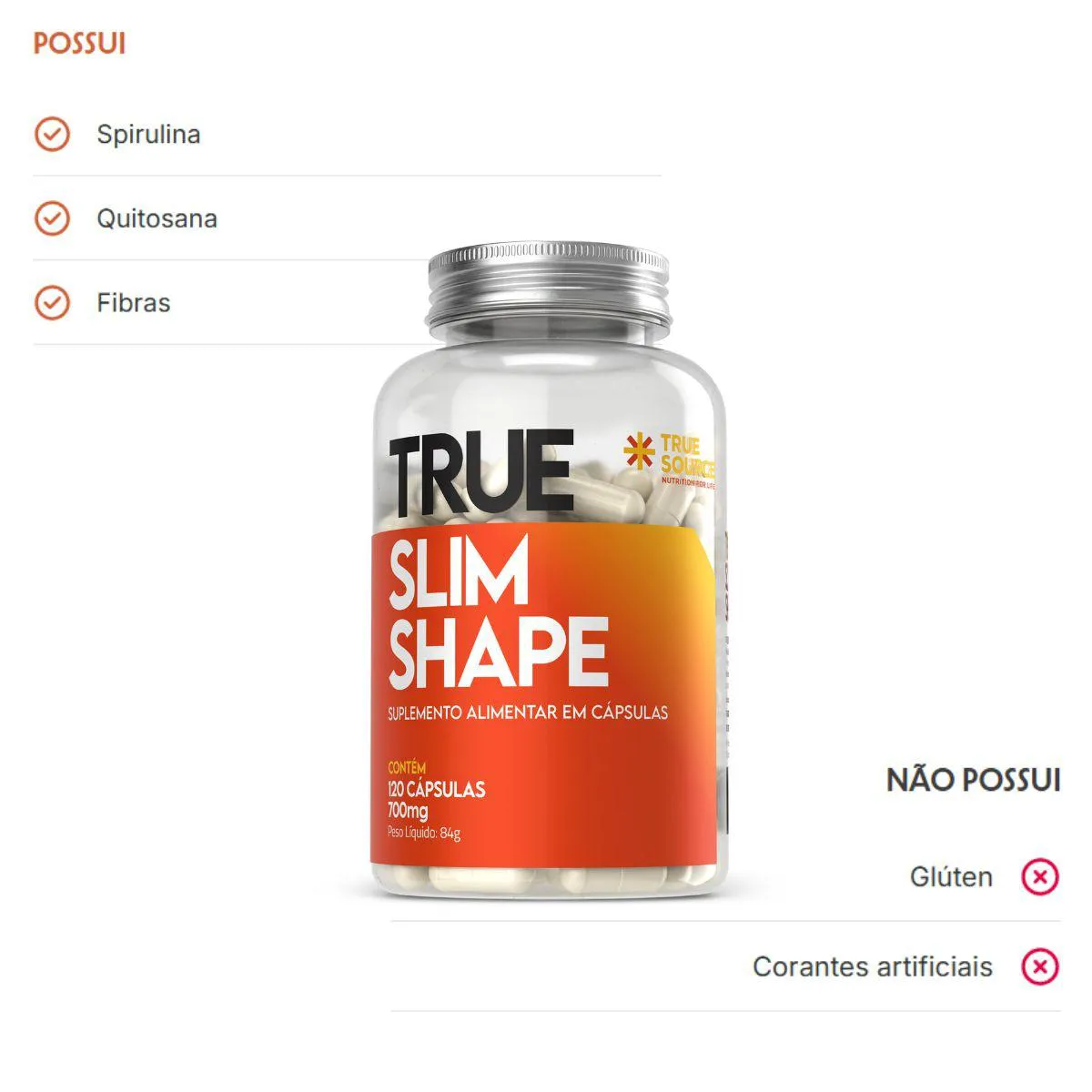 O True Slim Shape 700mg 120 Cápsulas True Source foi formulado para quem busca um suplemento premium com proposta leve, discreta e estruturada para acompanhar rotinas modernas. A True Source seleciona ingredientes funcionais amplamente utilizados em suplementos do dia a dia, sempre dentro das normas permitidas e mantendo composição limpa, sem exageros ou promessas de efeitos fisiológicos. Esse cuidado técnico reforça a transparência da marca e atende consumidores que valorizam escolhas conscientes, bem estar e uma abordagem equilibrada da nutrição.