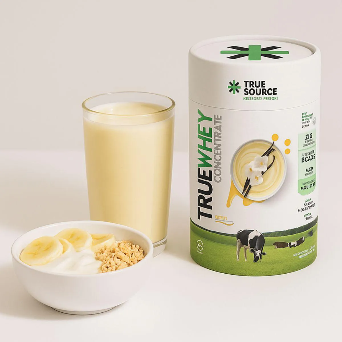 A composição utiliza whey protein concentrado isento de lactose, passando por processos de filtragem que garantem pureza e preservação das frações proteicas. A True Source aplica controle rigoroso em cada lote, assegurando padronização, rastreabilidade e uma fórmula sem aditivos desnecessários. A embalagem de 900g oferece rendimento adequado para semanas de uso, permitindo planejamento claro e estruturado do consumo. A textura fina facilita o preparo e mantém uma experiência sensorial agradável, alinhada ao padrão premium da marca.