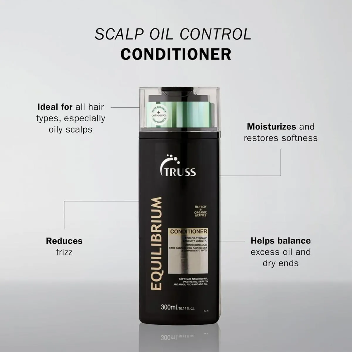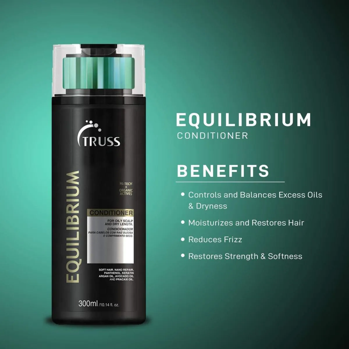 O Truss Equilibrium Condicionador é um produto de tratamento capilar desenvolvido para cabelos mistos ou oleosos, com uma fórmula inteligente que hidrata os fios sem deixá-los pesados. Sua função principal é condicionar e tratar os cabelos, oferecendo hidratação equilibrada, controlando a oleosidade, reduzindo o frizz e proporcionando leveza e brilho natural aos fios.