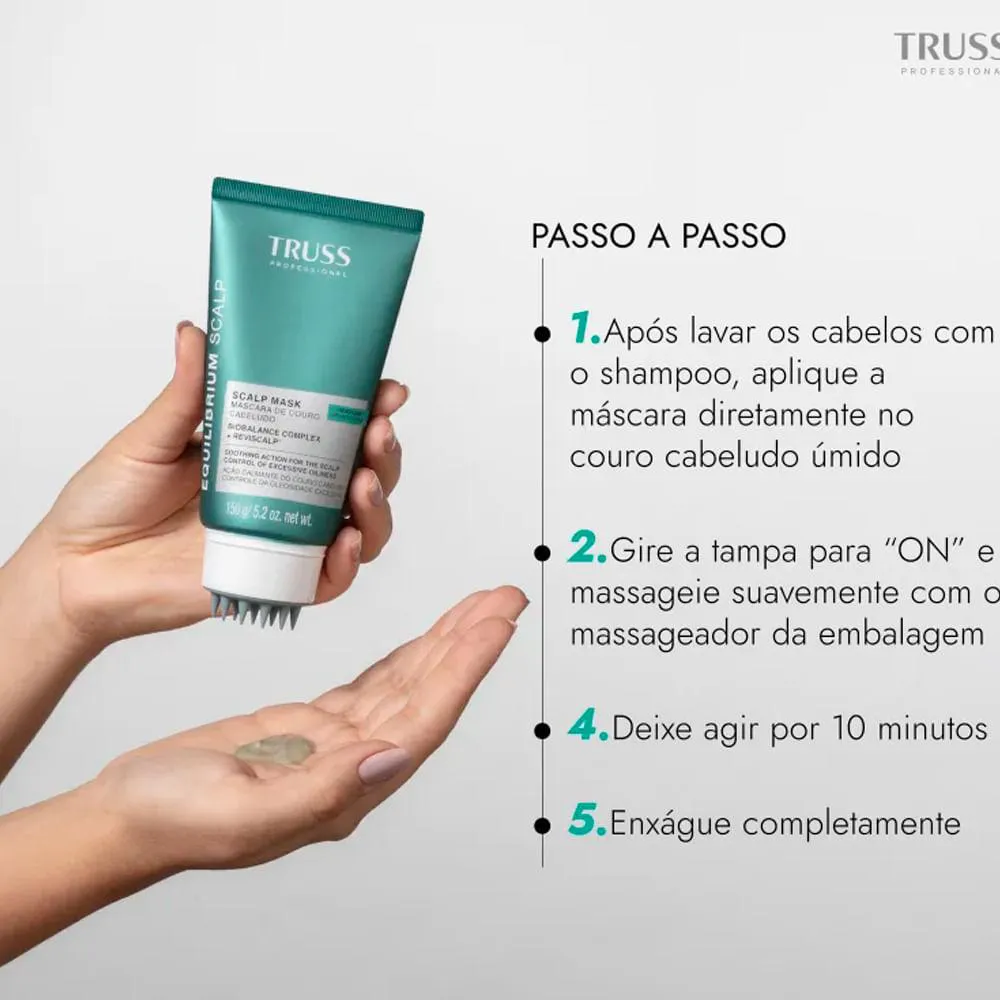 A Truss Máscara Couro Cabeludo Equilibrium Scalp HC 150g é um tratamento intensivo para quem busca equilibrar o couro cabeludo, especialmente em casos de oleosidade excessiva, descamação ou coceira. Ideal para cabelos mistos ou oleosos, esta máscara utiliza a Tecnologia Scalp Reboost para proporcionar uma ação calmante, purificante e refrescante, promovendo a saúde do couro cabeludo e hidratação equilibrada aos fios. Com fragrância fresca de Neroli, Bergamota e Flor de Laranjeira, transforma o cuidado capilar em uma experiência relaxante, oferecendo alívio imediato e cabelos revitalizados com brilho natural.