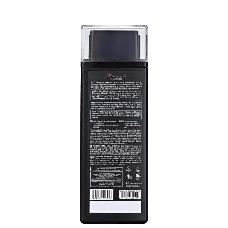 Shampoo Truss Miracle proporciona luminosidade incrível para os fios. A fórmula é indicada para recuperação capilar e crescimento saudável de todos os tipos de cabelos. O