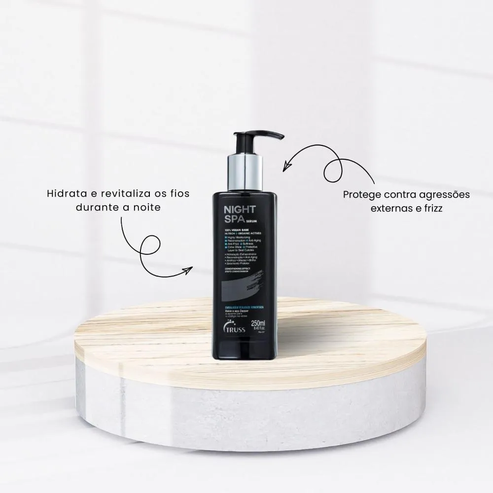 - 01 – Truss Night Spa Sérum de Tratamento Noturno 250 ml - Composição: Consulte a embalagem para composição completa.