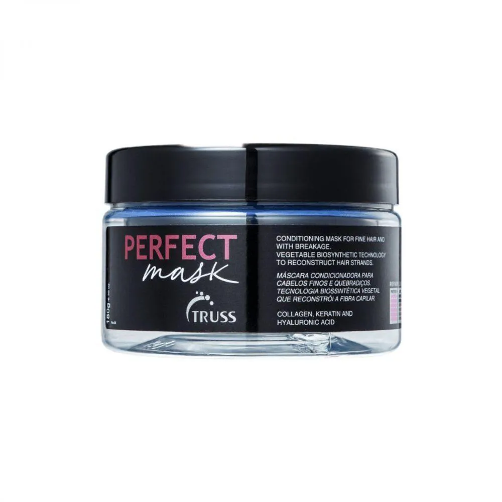 A Máscara Truss Perfect Mask possui fórmula rica em ativos que hidratam e reparam a cutícula danificada para devolver a vitalidade dos fios. Além disso, ele forma uma película protetora que evita o frizz e reduz o volume. Sua embalagem conta com estampas exclusivas criadas pelo estilista Alexandre Herchcovitch.