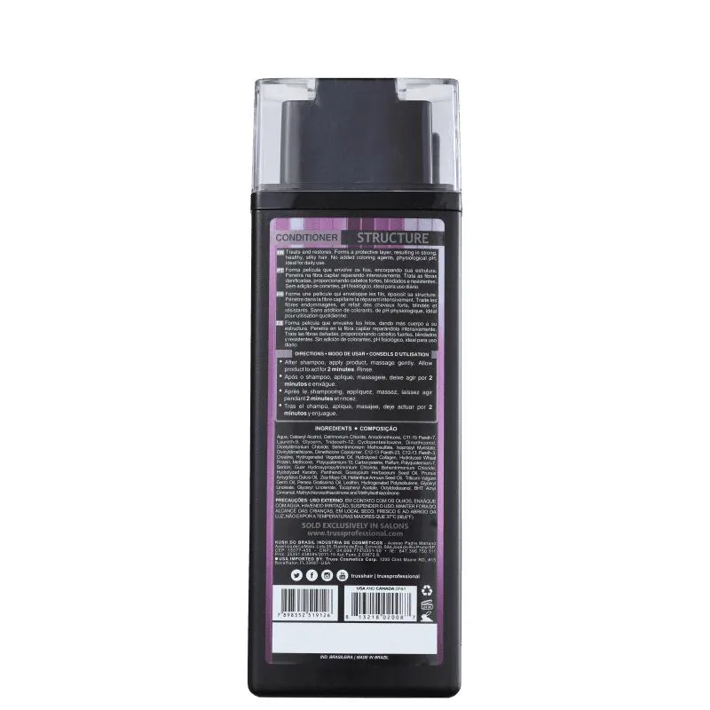 condicionador para cabelos danificados. TRUSS Structure condiciona enquanto recupera a elasticidade e resistência dos fios.O Condicionador TRUSS Structure forma uma película protetora que sela as cutículas capilares, elimina o frizz e protege contra os agentes externos. O produto deixa os fios mais fortes e espessos, graças aos seus ativos que penetram na fibra capilar, reparando intensivamente e proporcionando brilho e maciez.