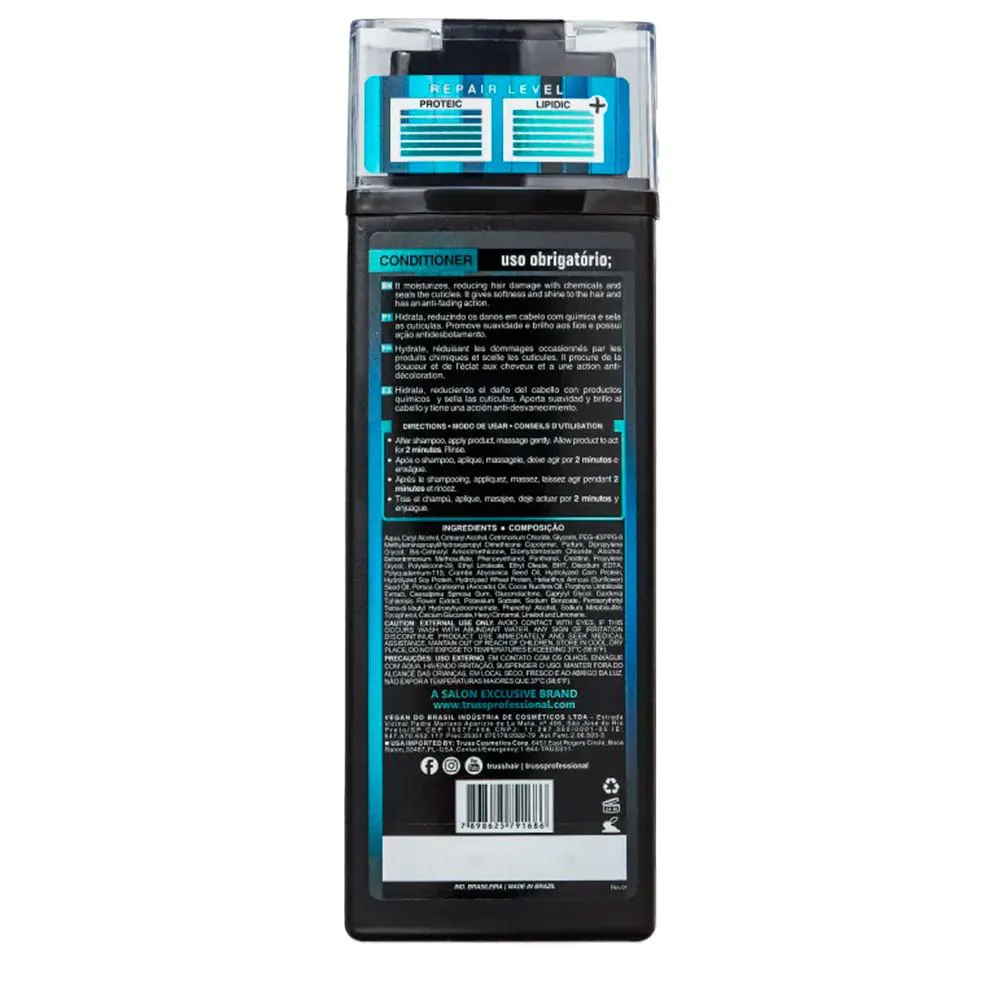 O Truss Uso Obrigatório condicionador é um tratamento essencial para restaurar a saúde dos cabelos danificados. Com uma fórmula rica em proteínas, aminoácidos e óleos nutritivos, ele promove uma hidratação profunda, repara as fibras capilares e fortalece os fios, deixando-os macios, brilhantes e protegidos. Ideal para todos os tipos de cabelo, especialmente os que passaram por processos químicos ou sofrem com danos diários, esse condicionador proporciona resultado imediato, devolvendo a vitalidade aos fios.
