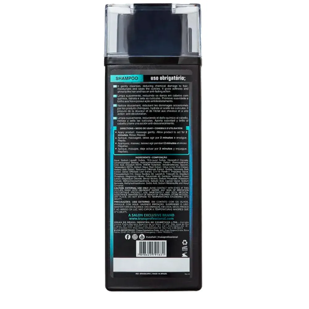 O Truss Uso Obrigatório Shampoo é essencial para restaurar cabelos danificados e fragilizados. Sua fórmula reconstrutora limpa os fios de forma eficaz, preparando-os para uma hidratação intensa e um tratamento profundo. Ideal para cabelos quimicamente tratados ou com alta porosidade.