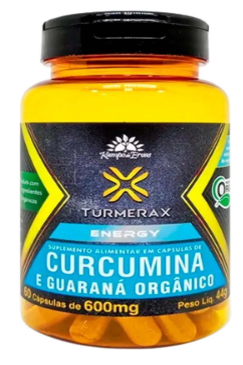 O Turmerax Energy Orgânico Kampo de Ervas 60 Cápsulas 600mg é um suplemento alimentar em Cápsulas de Curcumina com Guaraná e Gengibre.