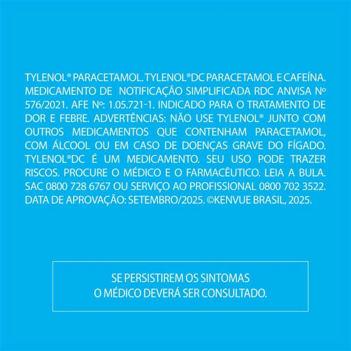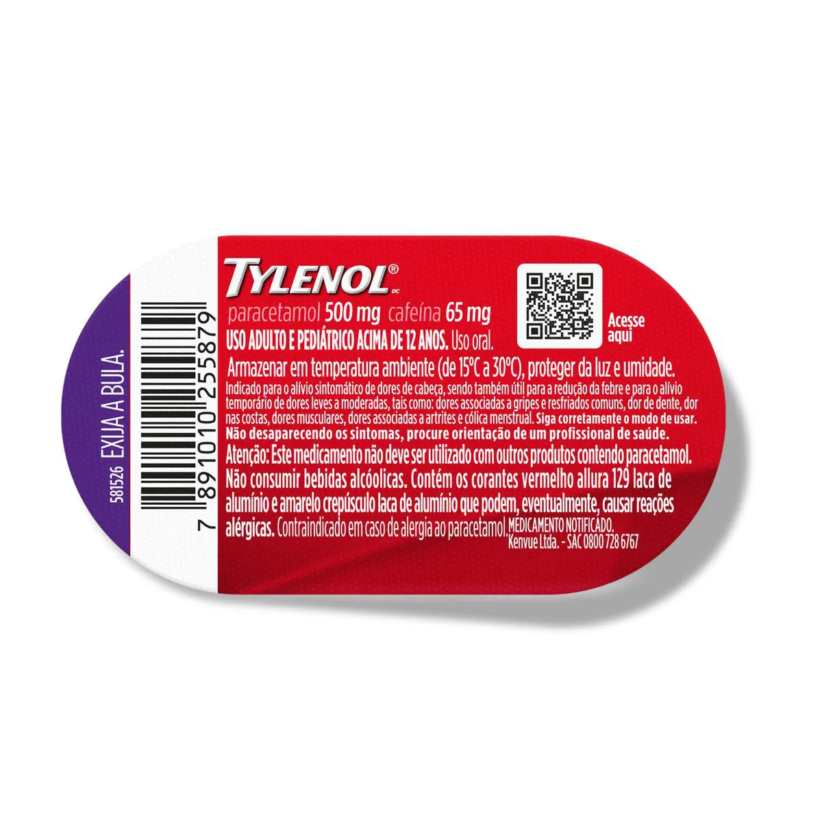 Tylenol Dor de Cabeça Paracetamol 500mg + Cafeína 130g - 4 comprimidos