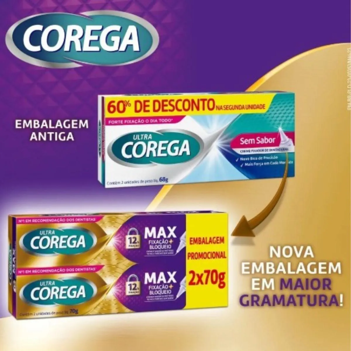 Ultra Corega Creme Max Fixação + Bloqueio – Fixador de Dentadura - Kit com 2Un de 70G