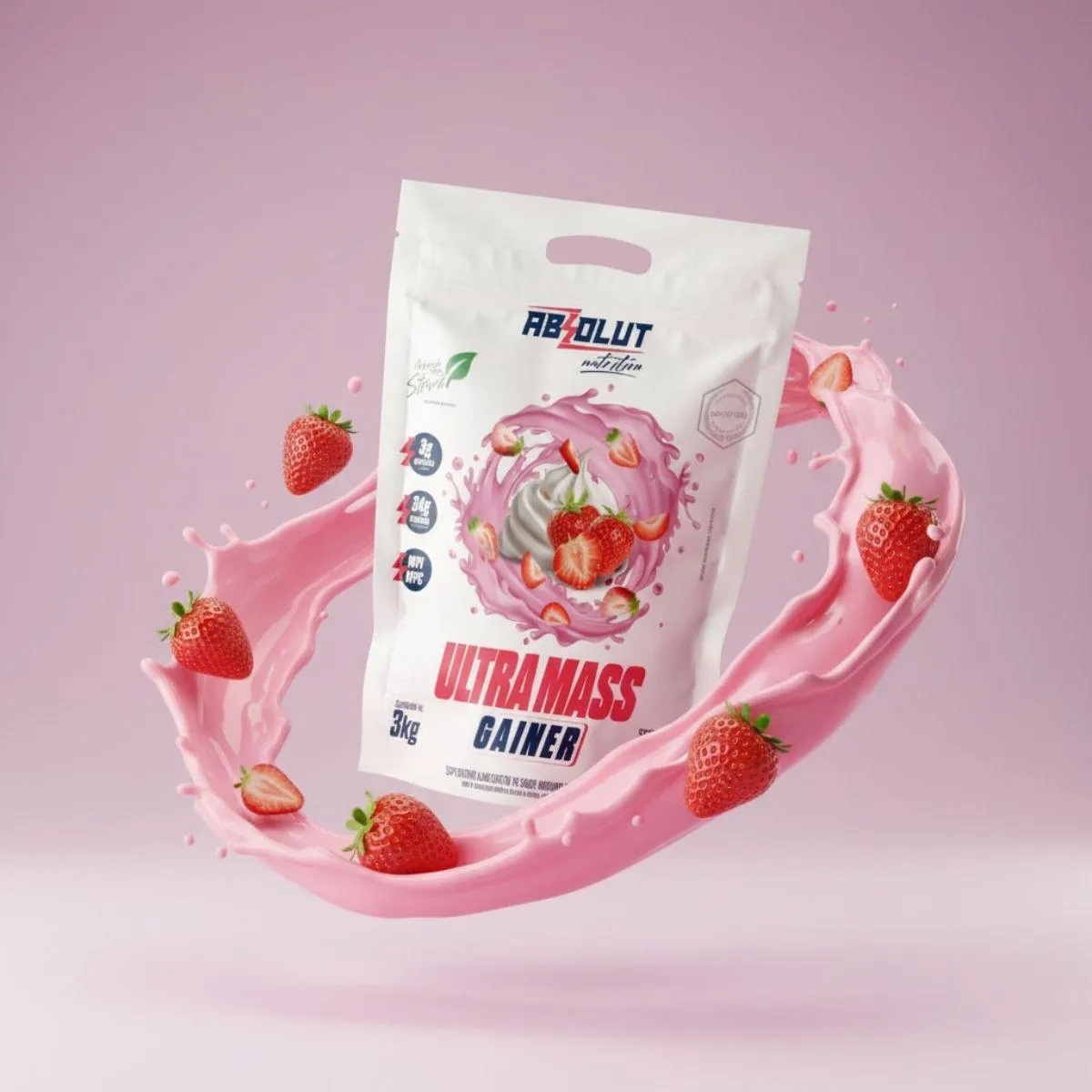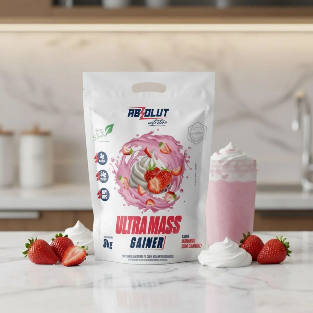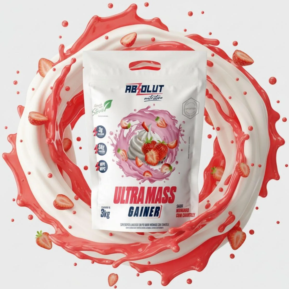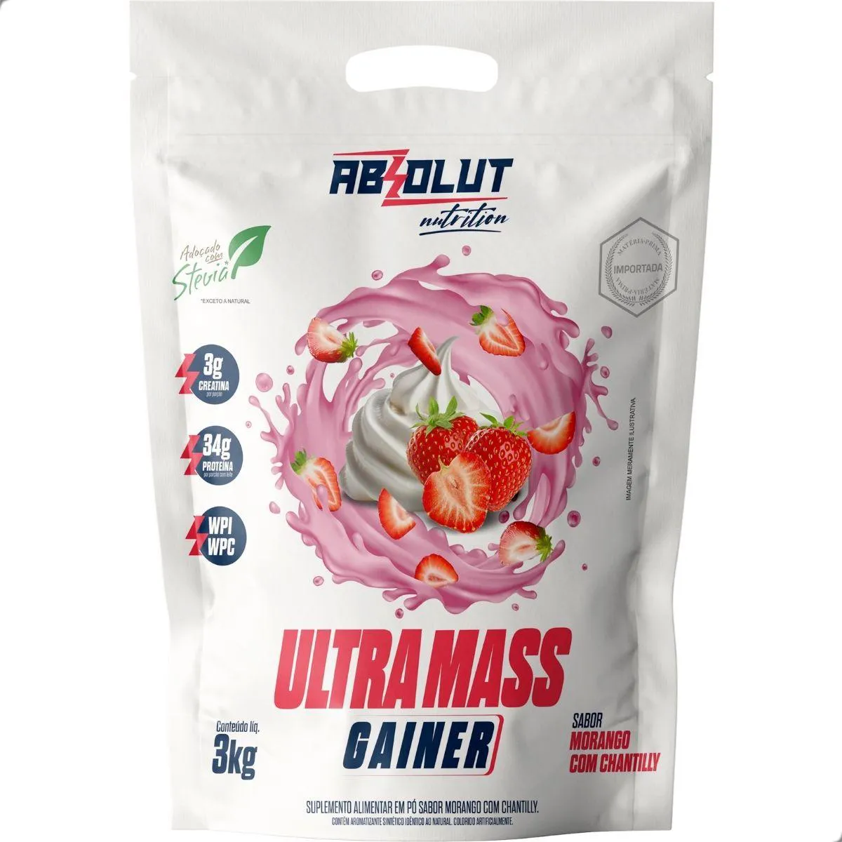 Ultra Mass Gainer Hipercalórico Premium 3Kg Absolut Nutrition Morango