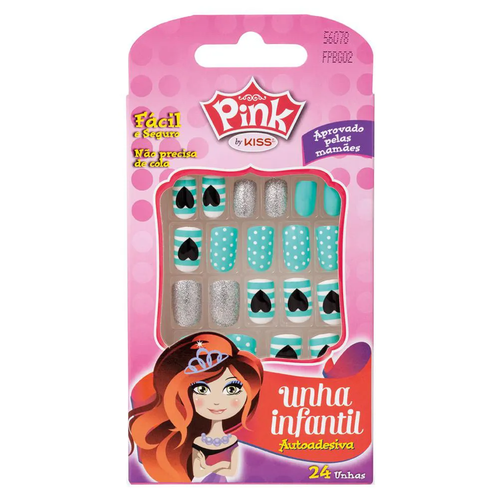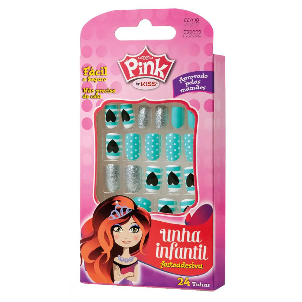 A Linha Pink de unhas postiças infantil autocolante de Kiss NY, desenvolvidas com cola à base de água para facilitar sua remoção em água morna. Aprovada pelas mamães, são indicadas para crianças de 8 a 12 anos e contam com um design divertido e cheio de desenhos!
