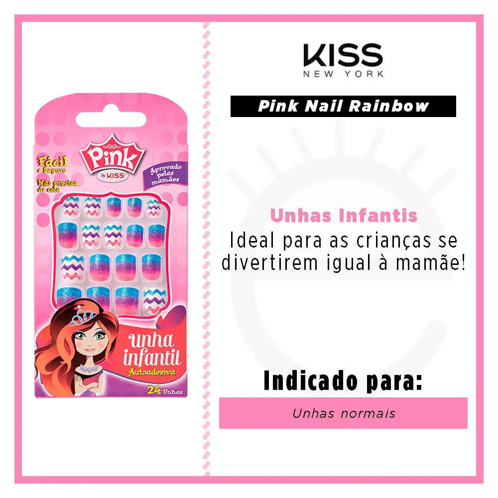 Unhas Postiças Infantis Kiss NY Rainbow – unha infantil Autoadesiva Pink é ideal para as crianças se divertirem igual à mamãe!