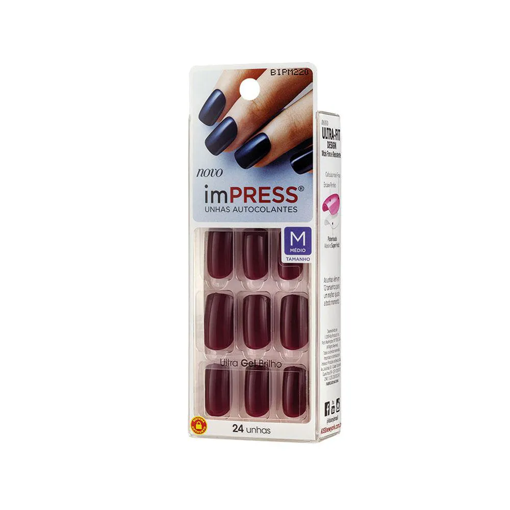 Impress Color Médio Pretty tem durabilidade de até uma semana. Com uma cor incrível, as unhas postiças proporcionam o mesmo efito das unhas de gel.