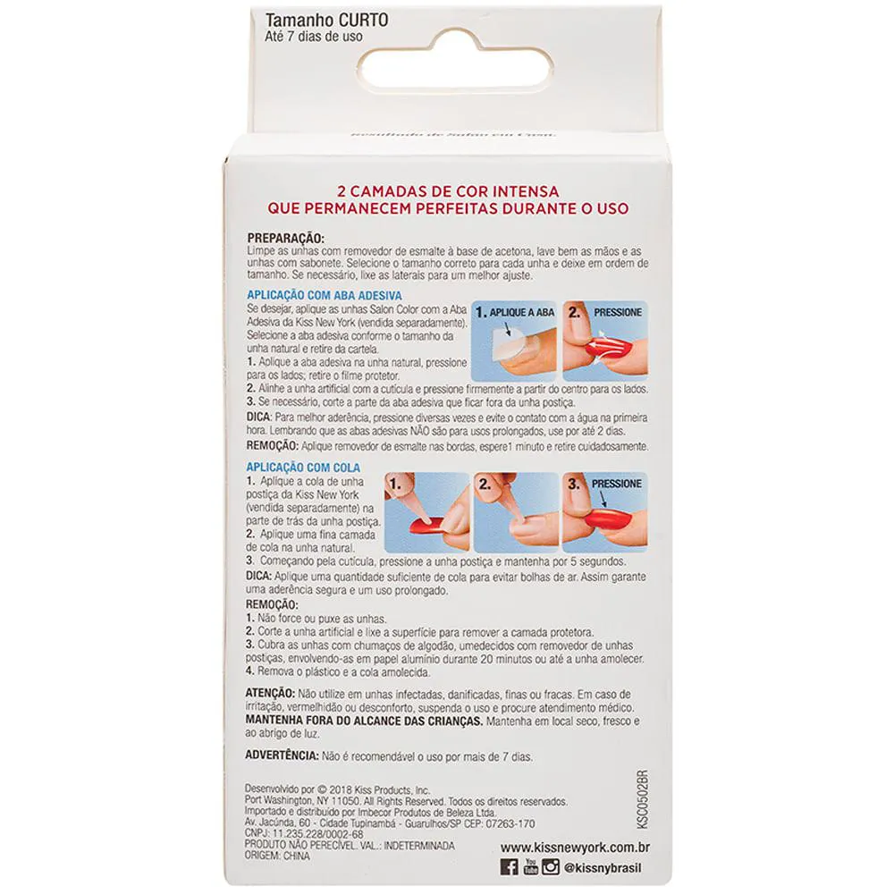 Salon Color da Kiss NY são as unhas postiças com cores muito atraentes e maravilhosa, um acabamento de muita qualidade livre de manchas, duas camadas de cor aplicadas resultando em um acabamento perfeito.