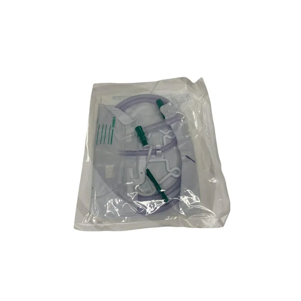 Capacidade total de 2000ml com marcação graduada para controle preciso do volume coletado.