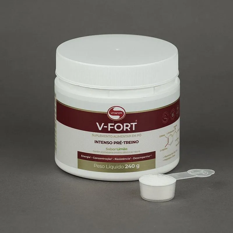 V-Fort - 240g Limão - Vitafor é um suplemento vitamínico formulado para promover a saúde e o bem-estar geral do organismo. Confira algumas características e benefícios deste produto: Vitaminas e minerais Essenciais: V-Fort é enriquecido com um complexo de vitaminas e minerais essenciais para o bom funcionamento do organismo, auxiliando na manutenção da saúde e no fortalecimento do sistema imunológico. Sabor Refrescante de Limão: Com um sabor refrescante de limão, V-Fort torna a suplementação vitamínica mais agradável, podendo ser consumido diariamente como parte de uma dieta saudável. Fórmula Balanceada: A fórmula de V-Fort é cuidadosamente balanceada para garantir a absorção adequada de nutrientes pelo organismo, proporcionando benefícios significativos para a saúde. Auxilia na Prevenção de Deficiências Nutricionais: A suplementação regular com V-Fort pode ajudar a prevenir deficiências nutricionais, garantindo que o corpo receba os nutrientes necessários para funcionar adequadamente. Promove a Saúde da Pele, Cabelos e Unhas: As vitaminas e minerais presentes em V-Fort ajudam a promover a saúde da pele, cabelos e unhas, contribuindo para uma aparência mais saudável e bonita. Contribui para a Saúde Óssea e Muscular: V-Fort contém nutrientes essenciais para a saúde óssea e muscular, ajudando a fortalecer ossos e músculos e prevenir problemas relacionados à deficiência desses nutrientes. Prático e Fácil de Consumir: Apresentado em embalagem de 240g, V-Fort é prático de transportar e de consumir, podendo ser adicionado a água, sucos ou outras bebidas de sua preferência. Qualidade e Segurança: V-Fort é produzido de acordo com os mais altos padrões de qualidade e segurança, garantindo um produto confiável e eficaz. Desfrute de uma Vida Mais Saudável: Com V-Fort Limão 240g, você pode complementar sua dieta com os nutrientes essenciais para uma vida mais saudável e equilibrada.