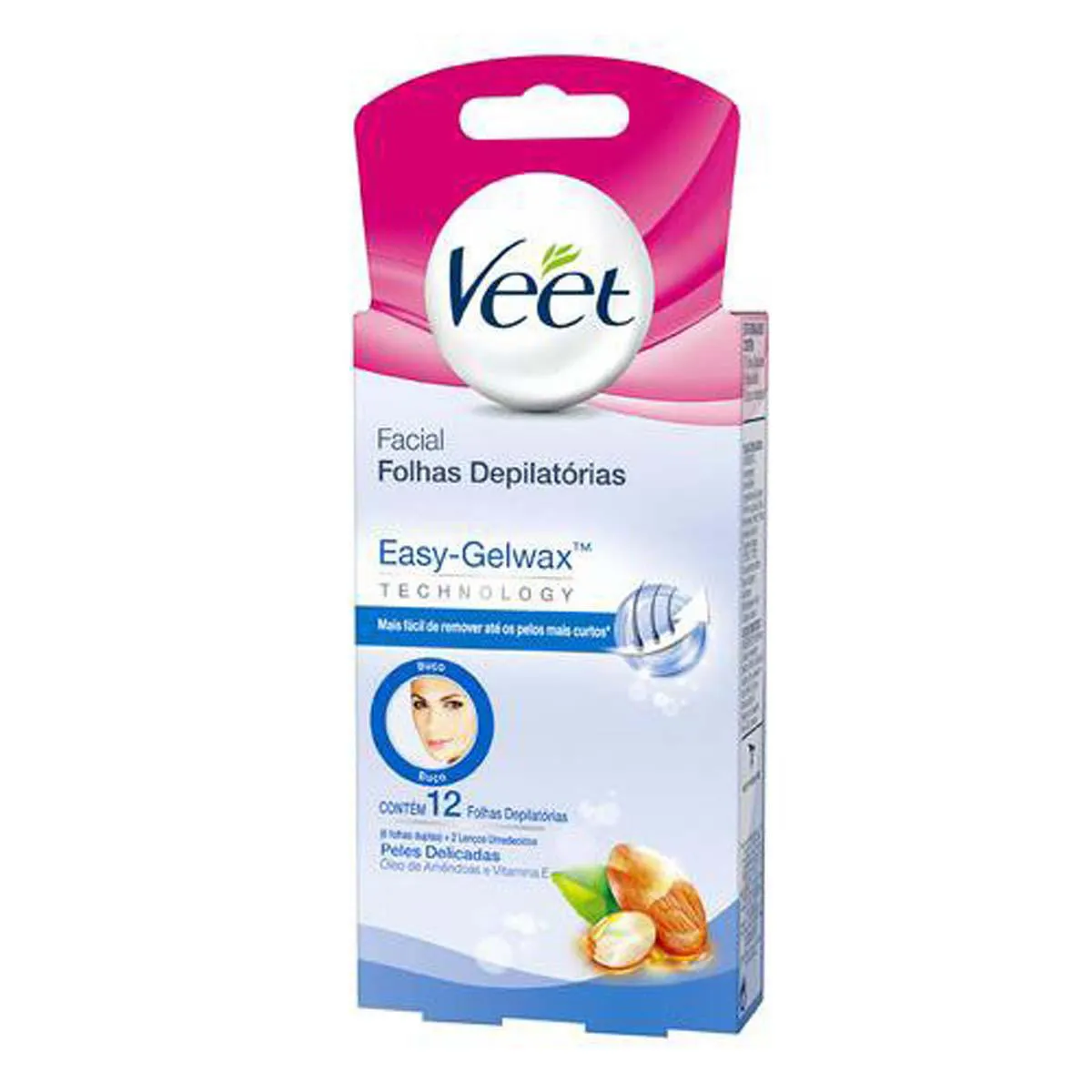 Folha Depilatória Facial Veet Easy-Gelwax Peles Delicadas 12 folhas