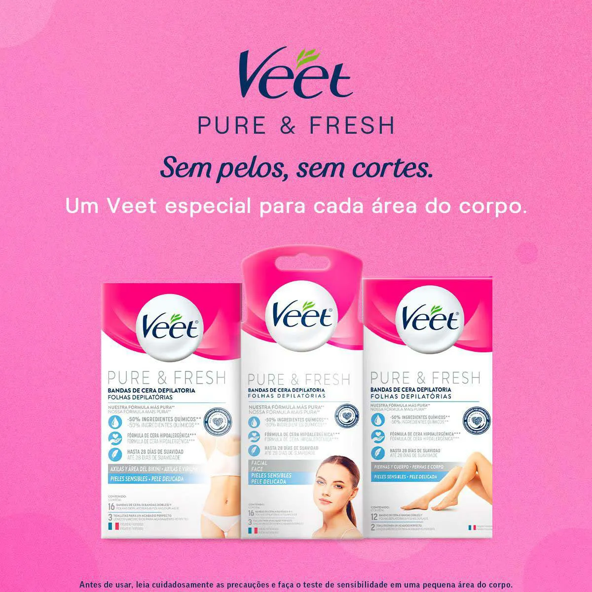 - NUNCA use a folha depilatória facial Veet Pure & Fresh para depilar outras regiões que não sejam no rosto.