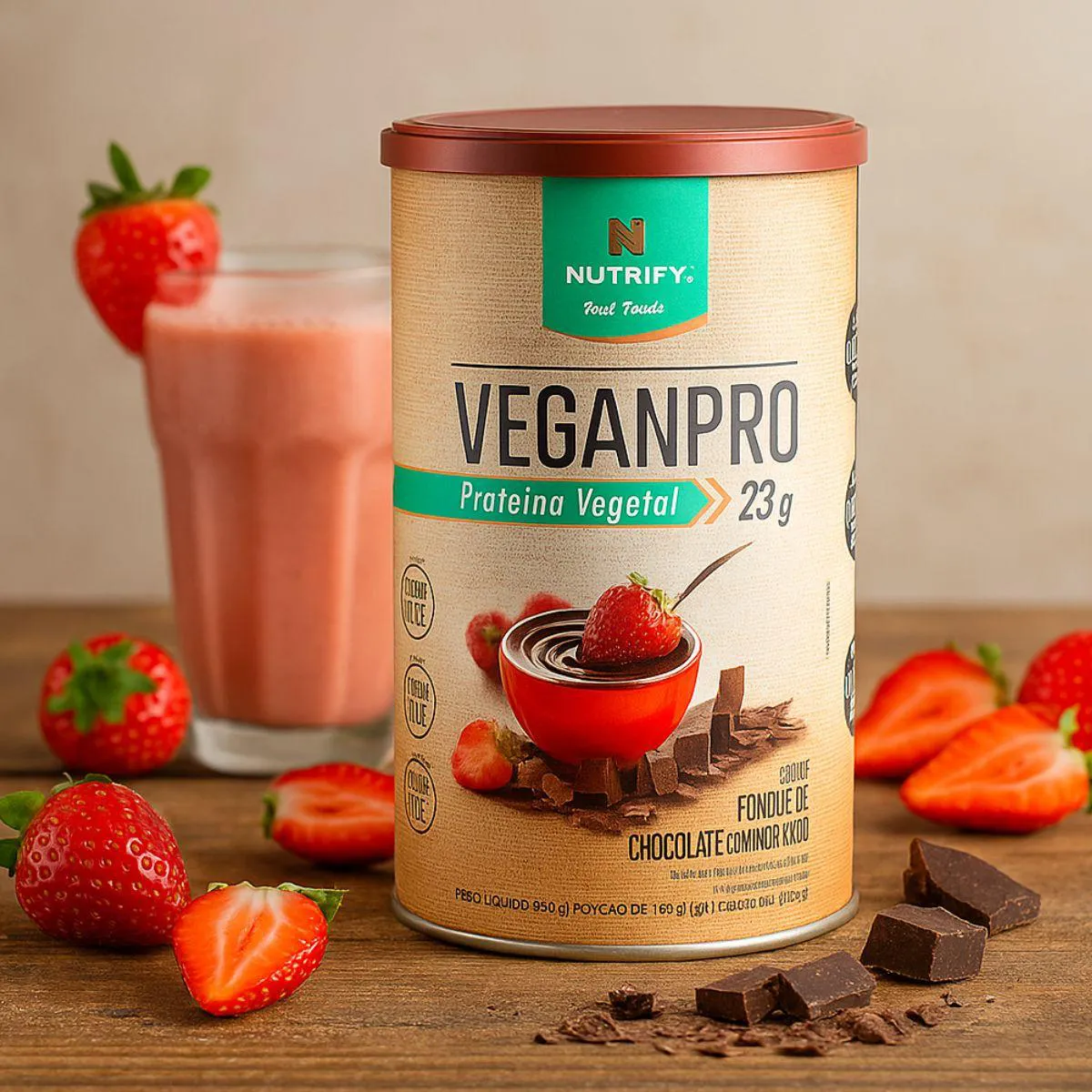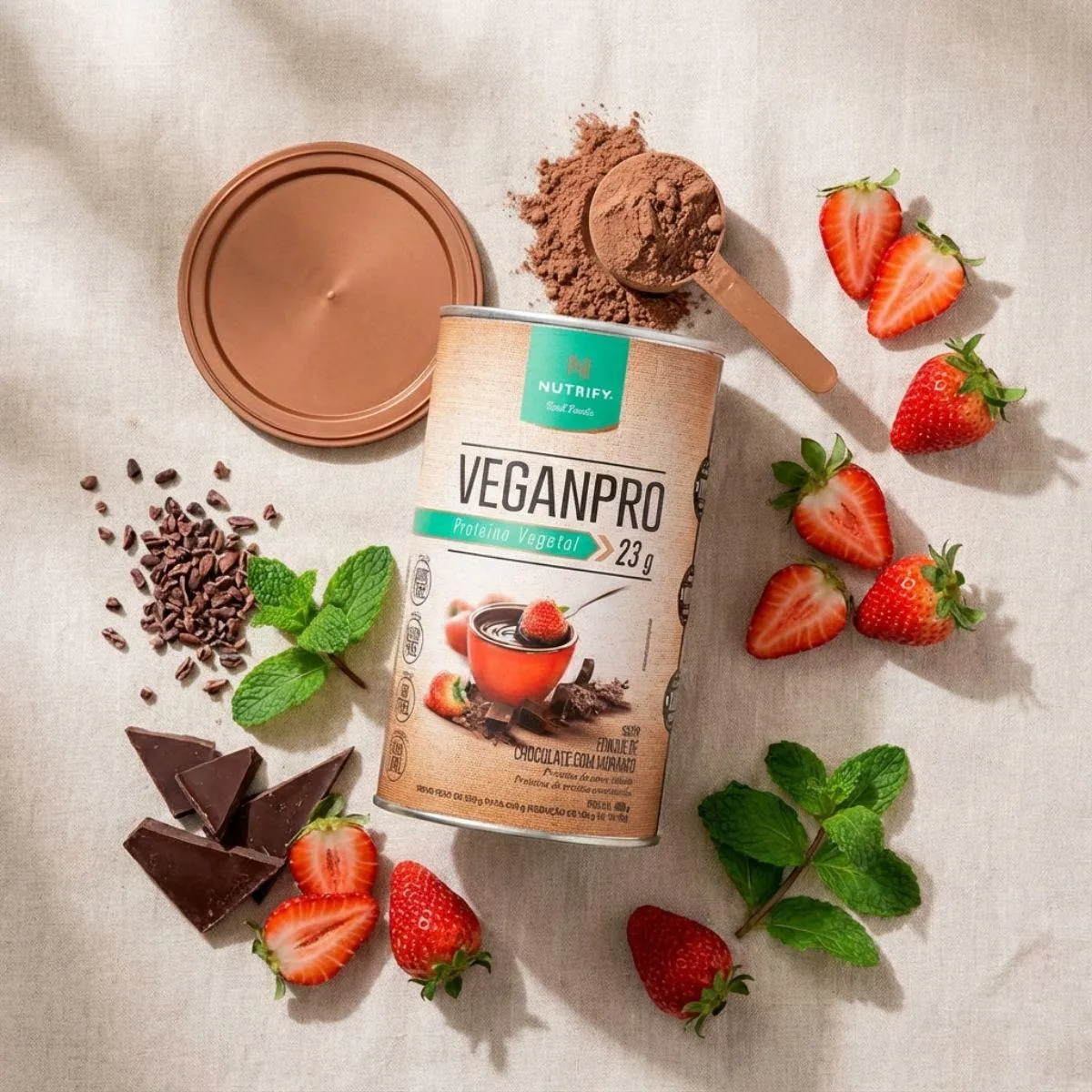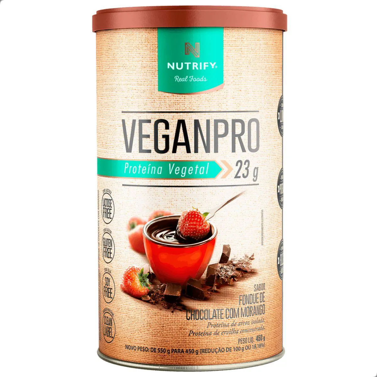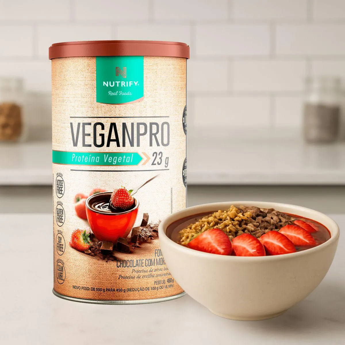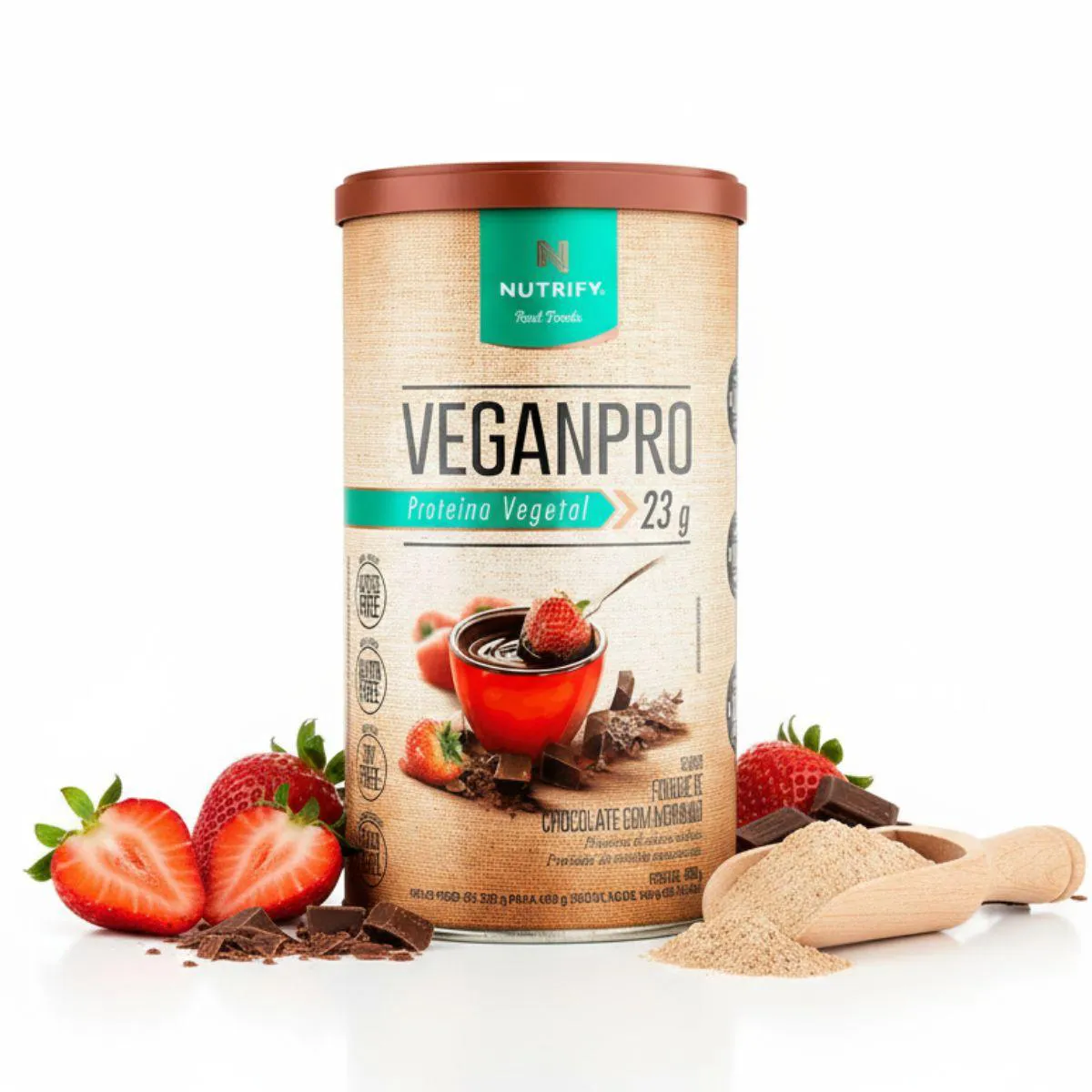 Vegan Pro Proteina Vegetal Isolada 450G Nutrify Chocolate C Morango