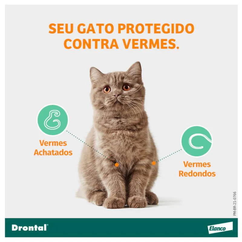 Ao eliminar tanto os vermes redondos quanto os chatos, o Drontal proporciona uma proteção abrangente, garantindo que seu gato fique livre de parasitas prejudiciais.